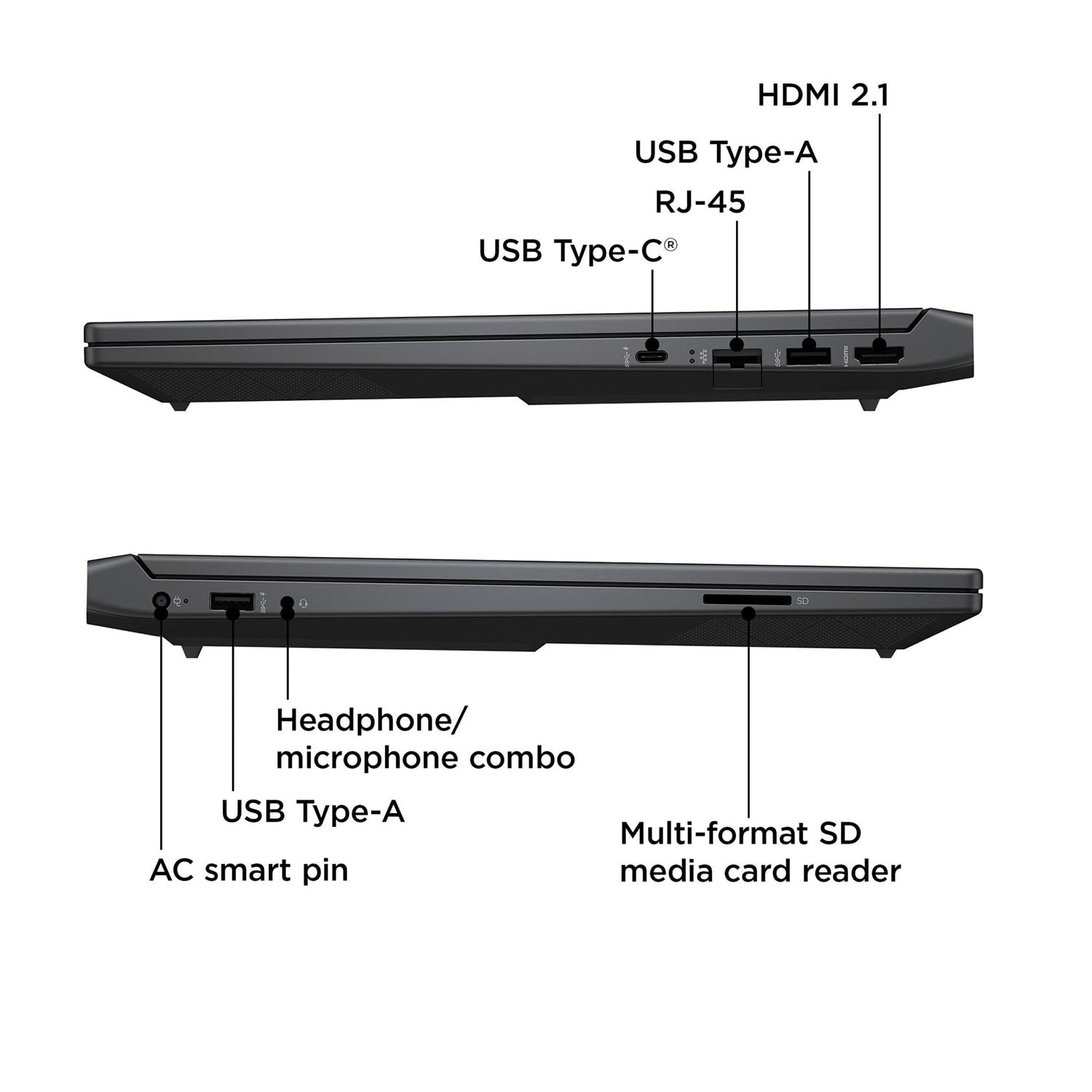Key Features and Benefits: CPU: AMD Ryzen 5 7535HS (6 Cores, 12 Threads, 16MB Cache, 3.3 GHz base frequency, up to 4.55 GHz max turbo frequency) Memory: Up to 64GB DDR5 RAM Hard Drive: Up to 2TB PCIe M.2 Solid State Drive Operating System: Windows 11 Home Display: 15.6'' FHD (1920 x 1080) 144Hz anti-glare IPS Micro-edge Display Ports: 2 x USB 3.0 Type-A 1 x USB 3.0 Type-C 1 x HDMI 2.1 1 x Headphone/Microphone Combo Jack 1 x SD Card Reader 1 x Power Adapter 1 x RJ-45 Graphics: NVIDIA GeForce RTX 2050 4GB GDDR6 Backlit Keyboard: Yes (Switch: FN+F4) Media Drive: Yes Optical Drive: None Wireless Connectivity: Wi-Fi 6 and Bluetooth Combo Webcam: HP Wide Vision HD Camera Dimensions: 14.09"" x 10.04"" x 0.93"" Weight: 5.06 Pounds Color: Mica Silver