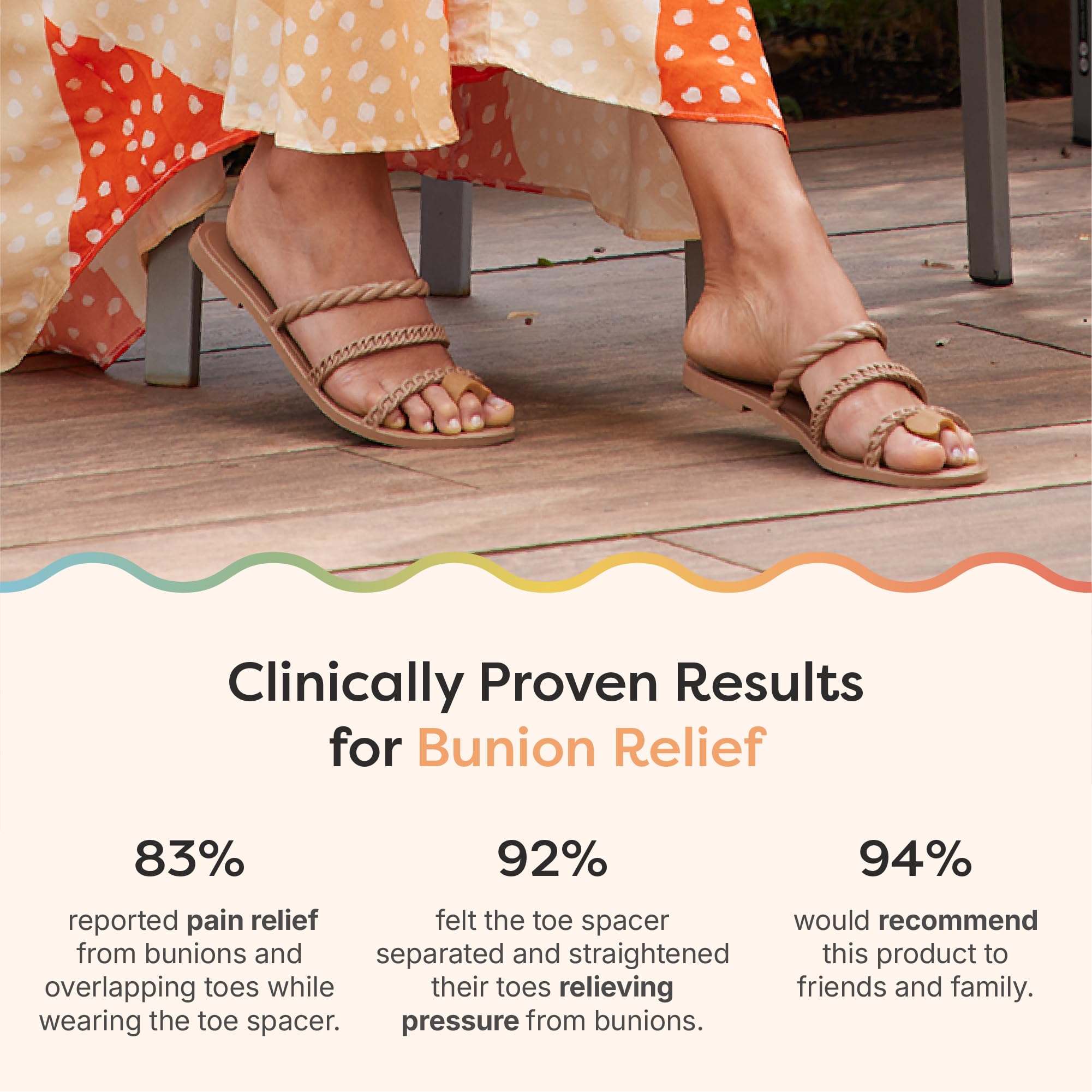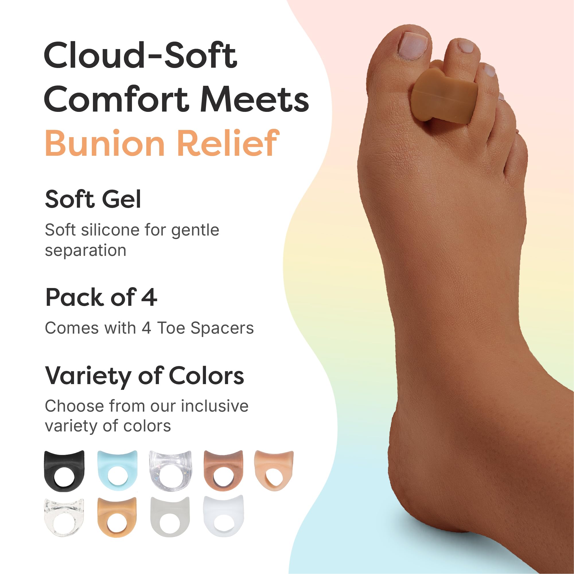Comfortable and Durable - The soft, flexible gel toe ring conforms to your toes, fitting comfortably in any shoes and allowing you to stand or walk for longer in comfort. Our toe separators can be worn during the day and at night to provide continuous toe pain relief.
