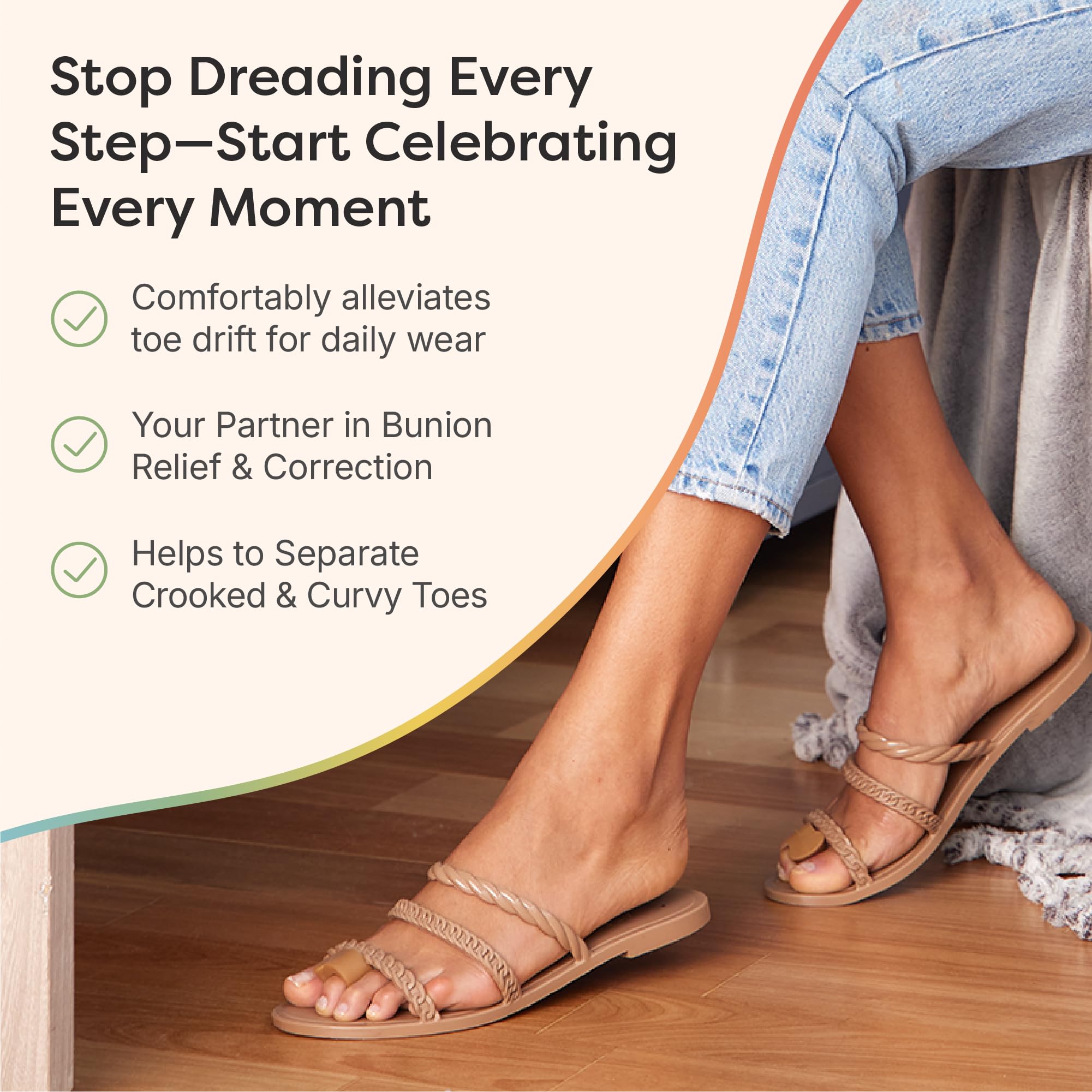 Easy to Use - Simply slip the ring over your second toe and position the gel pad against your big toe. The gel cushion will keep your big toe in proper alignment to prevent it from overlapping or rubbing against your second toe. Can be worn alone or with bunion pads for even more protection.