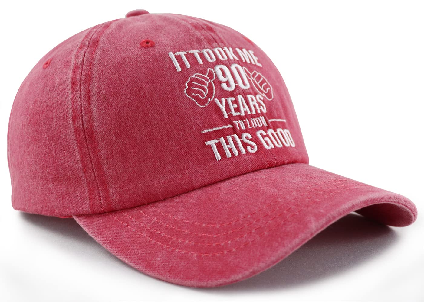 Perfect Size & Adjustable: 90 Years Old Baseball Party Decorations Cap Circumference: 21.7-23.2 Inches/55-59 Cm; Brim: 2.8 Inches/7 Cm; Hat Height: 3.5 Inches/9 Cm, The Baseball Hat for Women and Men Has a Metal Adjustment Buckle, Which Can be Adjusted Freely, Ensure Maximum Comfort and a Secure Fit at All Times. One Size Fits for Both Men and Women, Comfortable Everyday Fit. Perfect Birthday Gifts for Dad and Mom.