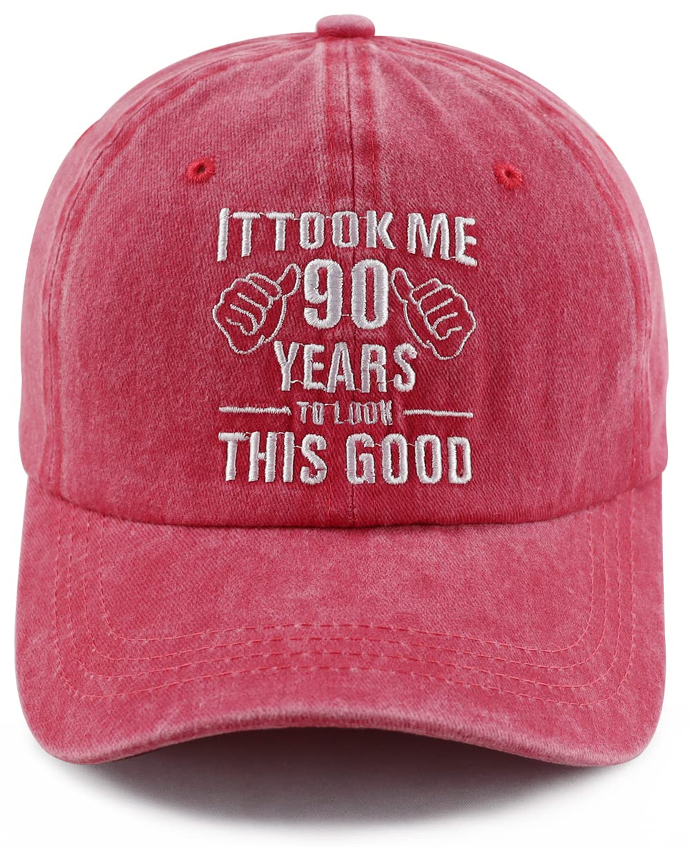 90th Birthday Gifts for Women Men: If You’ve Made It to 90 Years Old, then You Know a Thing or Two About Life! That’s Why We Say Cheers to Ninety Years with Our Vintage 1935 Hat. Our 90th Birthday Baseball Hat is a Perfect Gift to Show Her Your Appreciation and Best Wishes, and Make Her Him Feel Extra Special! They Can be Used for Many Years to Come and Will Not Fade or Scratch off Because They are Permanently Imprinted Which Reads It Took Me 90 Years To Look This Good.