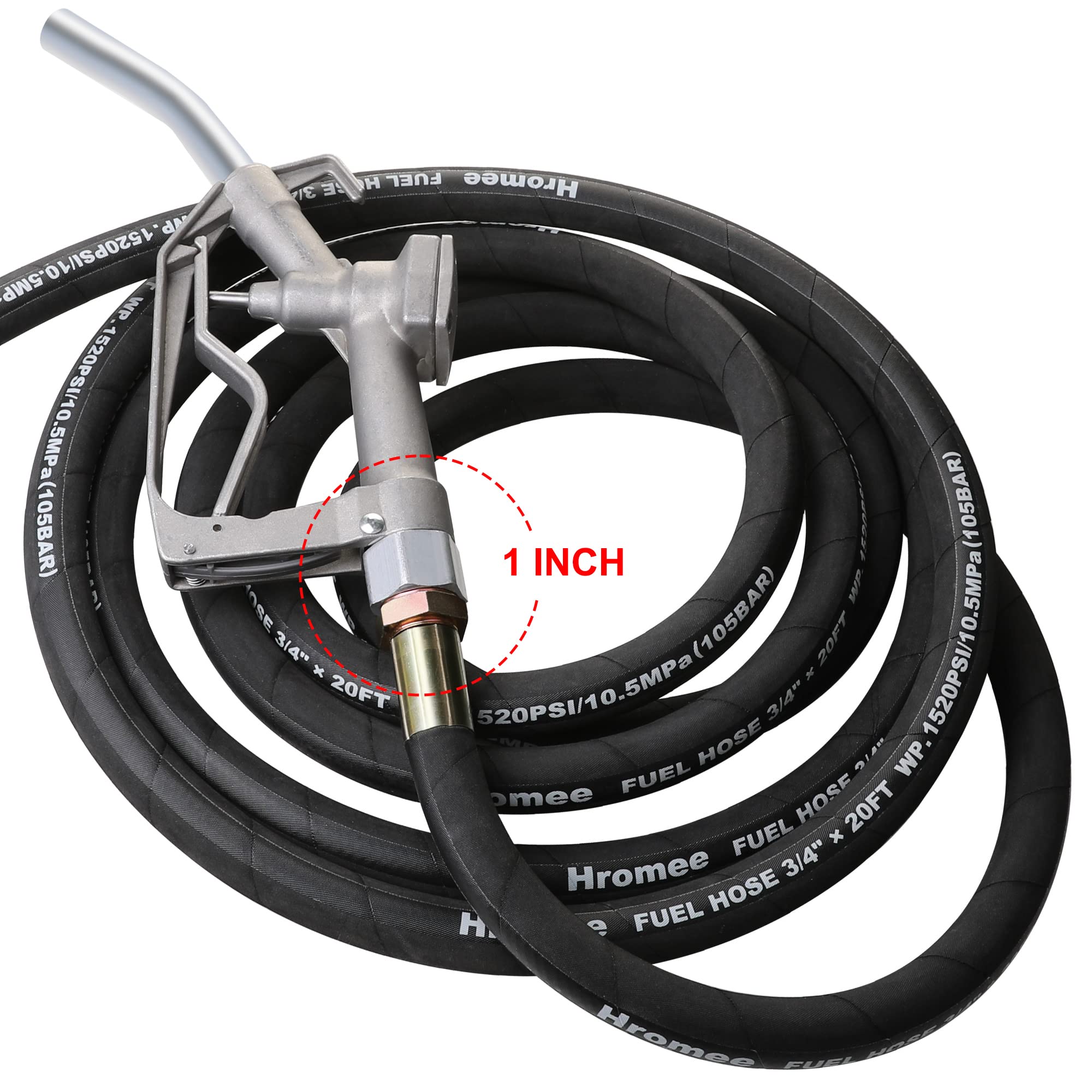 This Transfer tank hose include a 3/4 Inch NPT End connection and a 1 inch NPT threaded fitting at the other end.