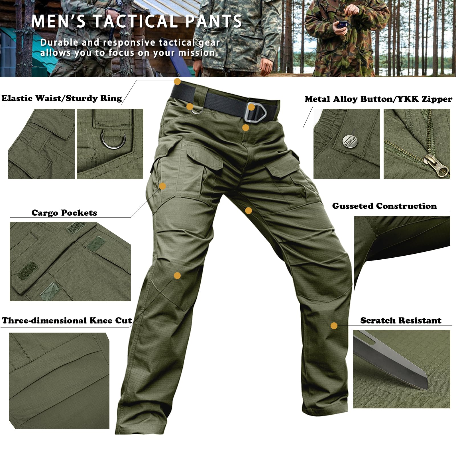 [Stretch Fabric] : Men's cargo tactical pants are made with a stretchy polyester, cotton and spandex blend for mobility and durability. Ripstop fabric provides excellent wear-resistant, water-resistant , stain-resistant, scratch-resistant and dust-resistant. Convenient to outdoor activities, or daily wear. These tactical pants are a loose fit, if you prefer a slimmer fit, please go one size down. (Note: The exclusive Tactical Belt is not included).