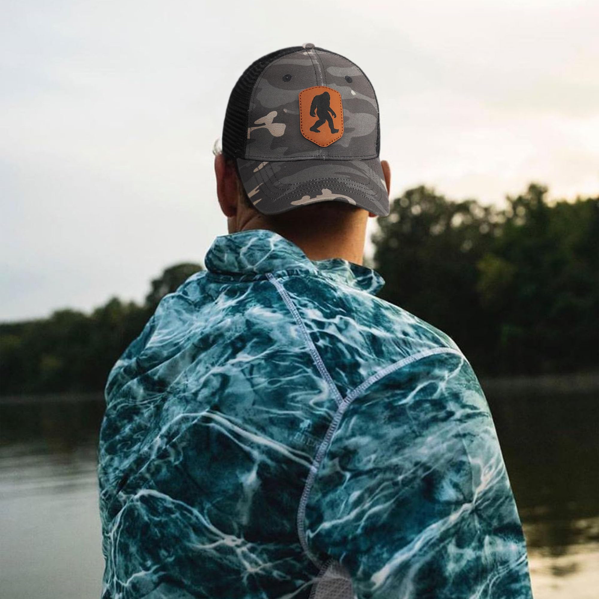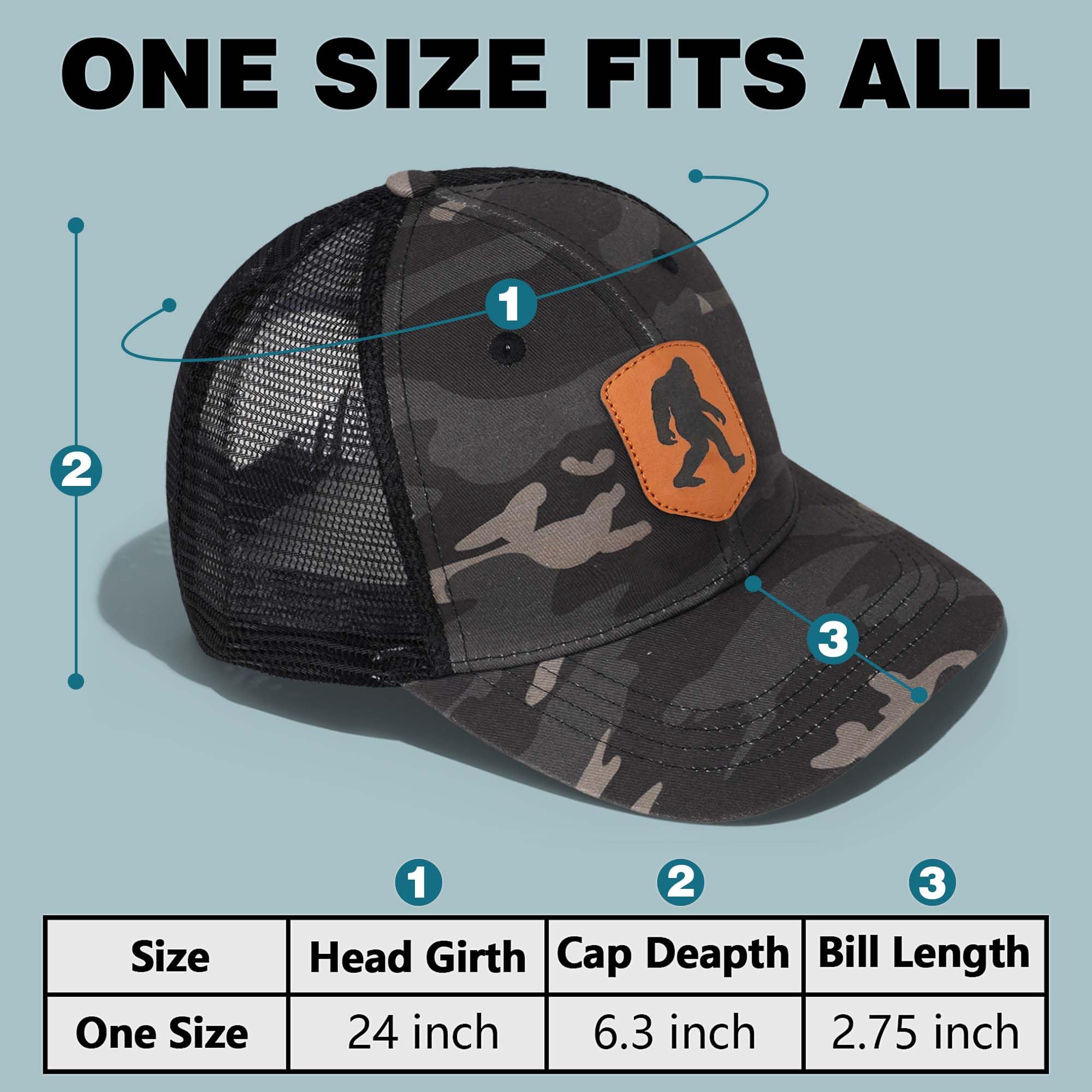 Wild Bigfoot Designs: Features an exquisite Bigfoot leather logo on the front of these leather patch hats. These Bigfoot leather patch hats will soon become your favorites. Because you will get comments and compliments on it wherever you wear these Bigfoot hats for men.