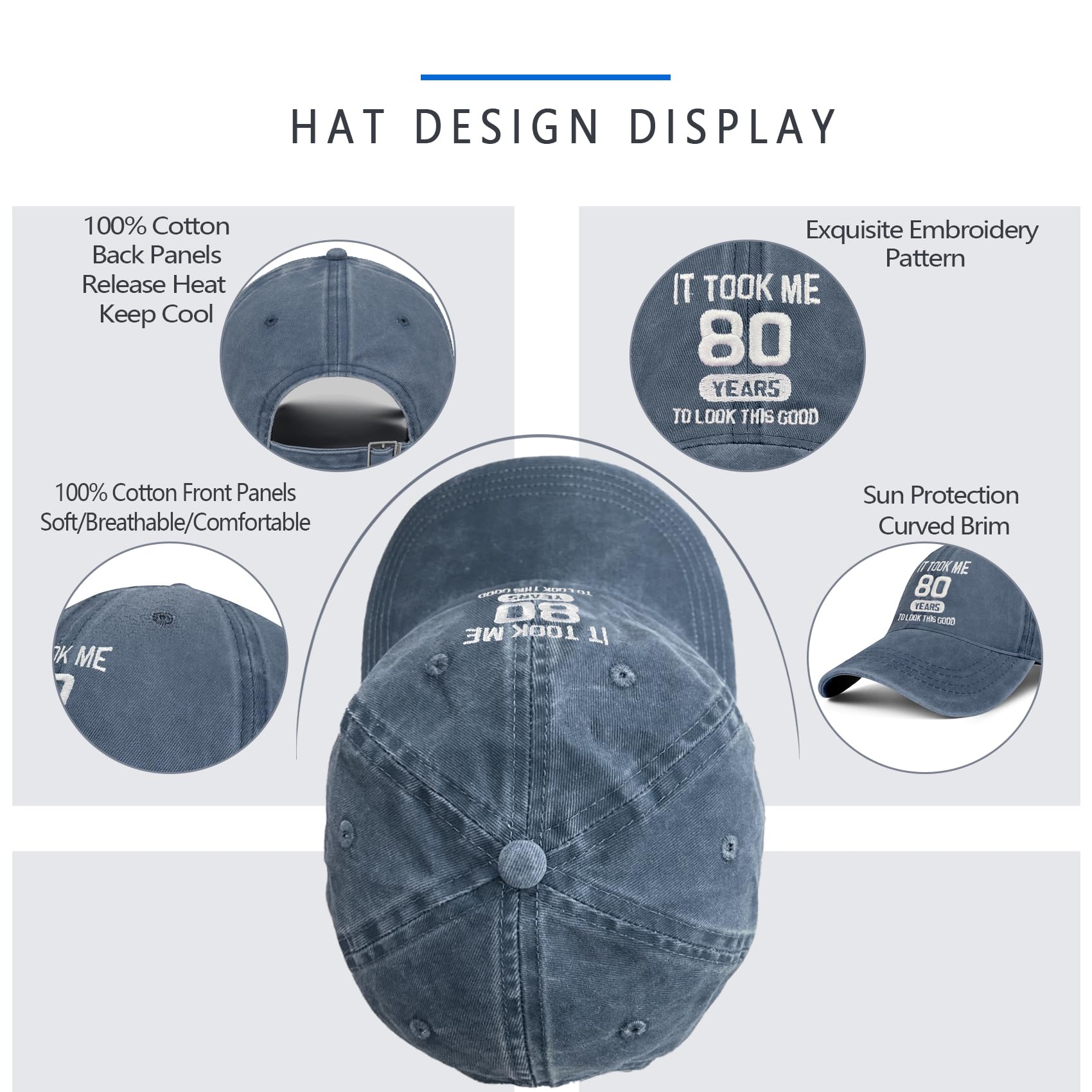 Funny birthday gifts: Bring joy in 80th Birthday party. With the Unique Design, the ' It took me 80 years to look this good ' Hat is a perfect gift for 80 years old men / women