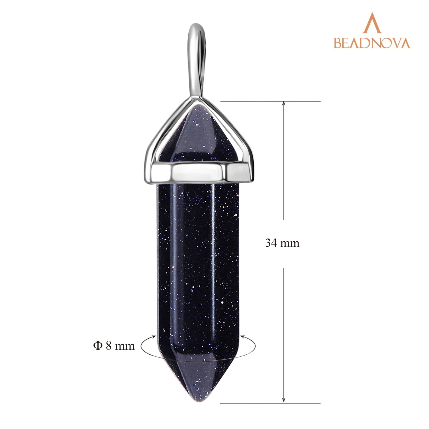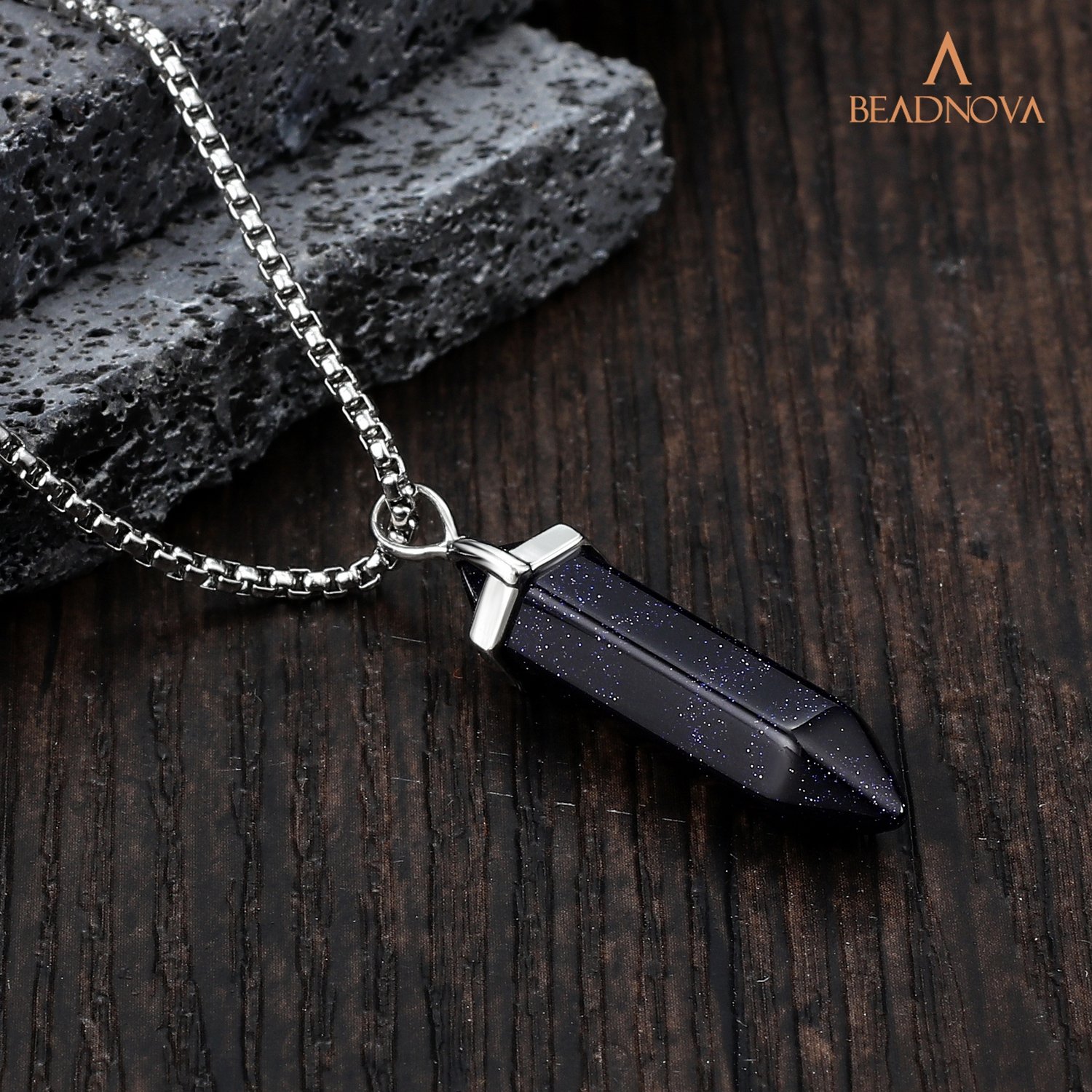 BLUE SANDSTONE NECKLACE: Crystal Necklace comes with 1 synthetic blue sandstone hexagonal crystal pendent with stainless steel necklace chain. Hexagonal Crystal size measurement: 34mm(Length) x 8mm(Width). Necklace chain is approx. 45cm (18 inches) length.
