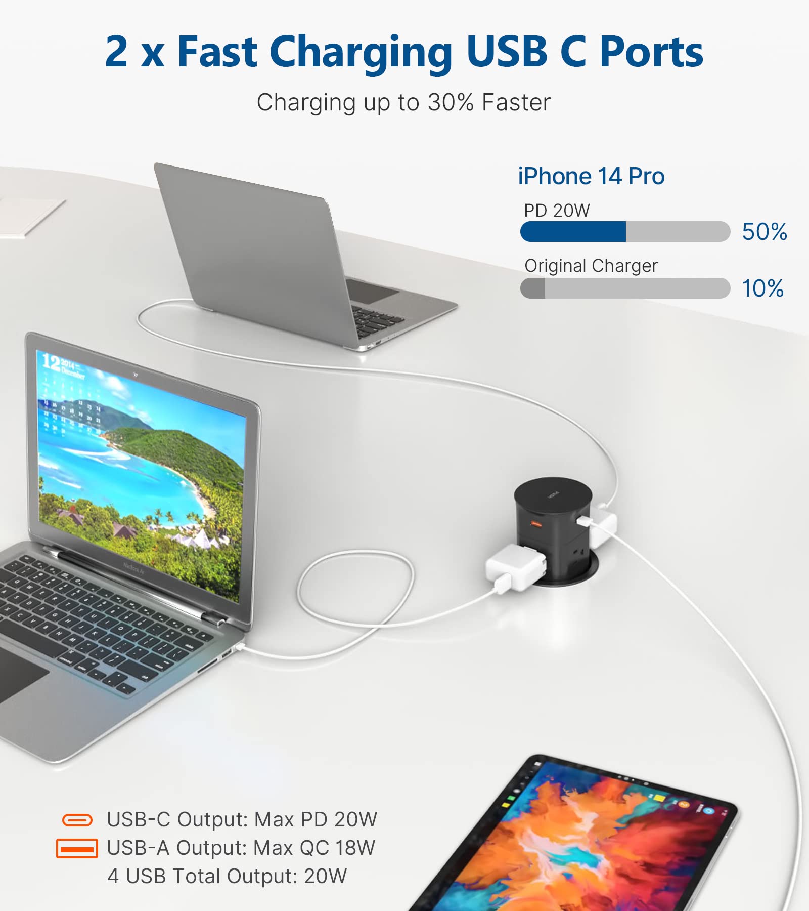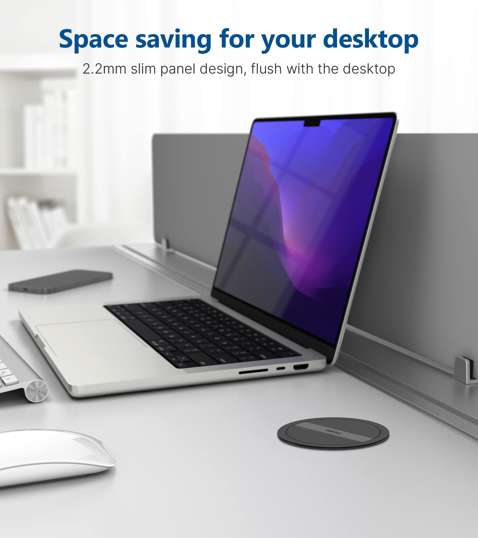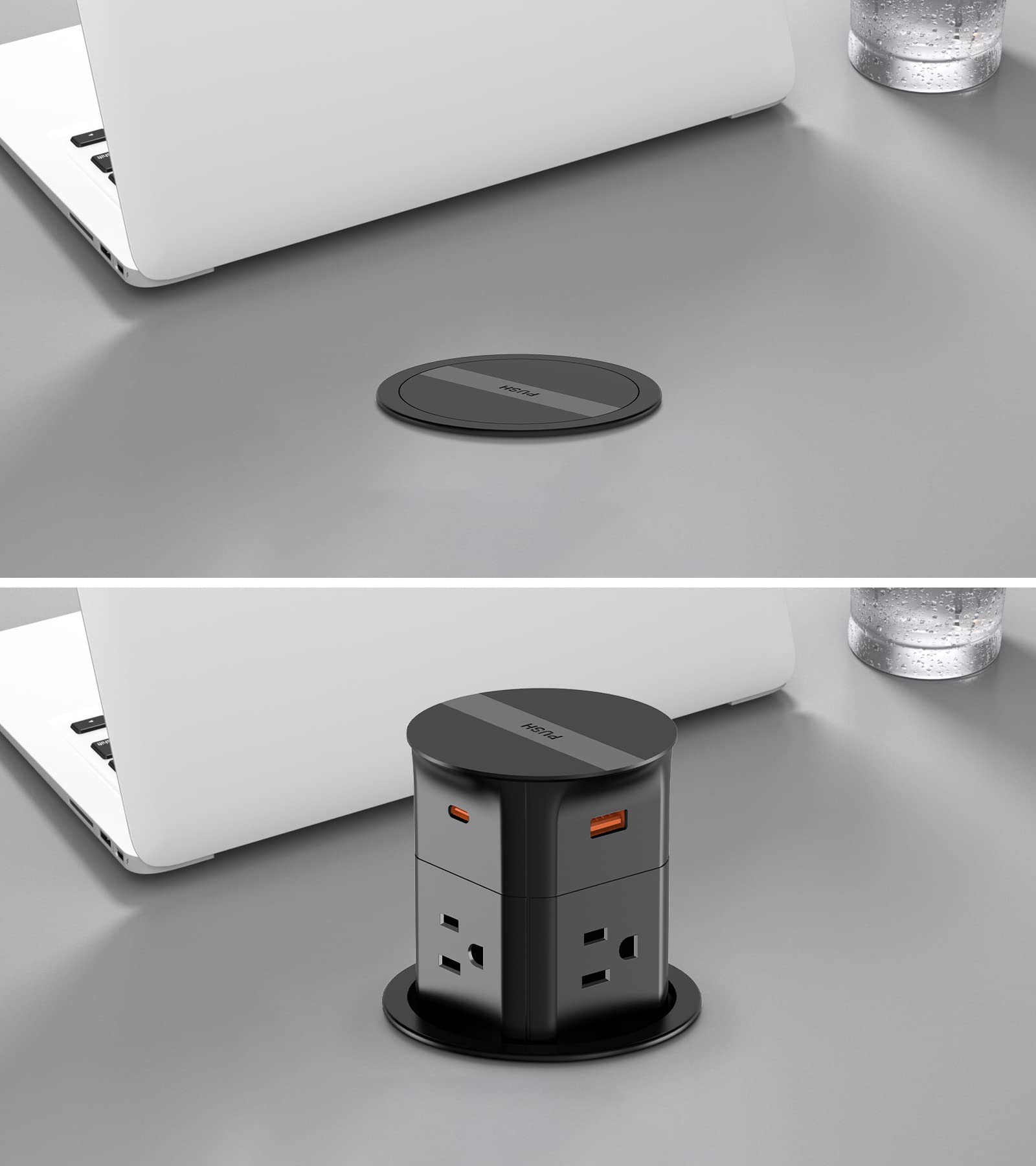 Compact Countertop Pop Up Outlet: Hidden outlets for a clean look.Fully automatic retractable desktop design,this unique grommet power outlet get rid of hefty adapters and messy plugs. Ideal for charging multiple devices at the home/office/school.