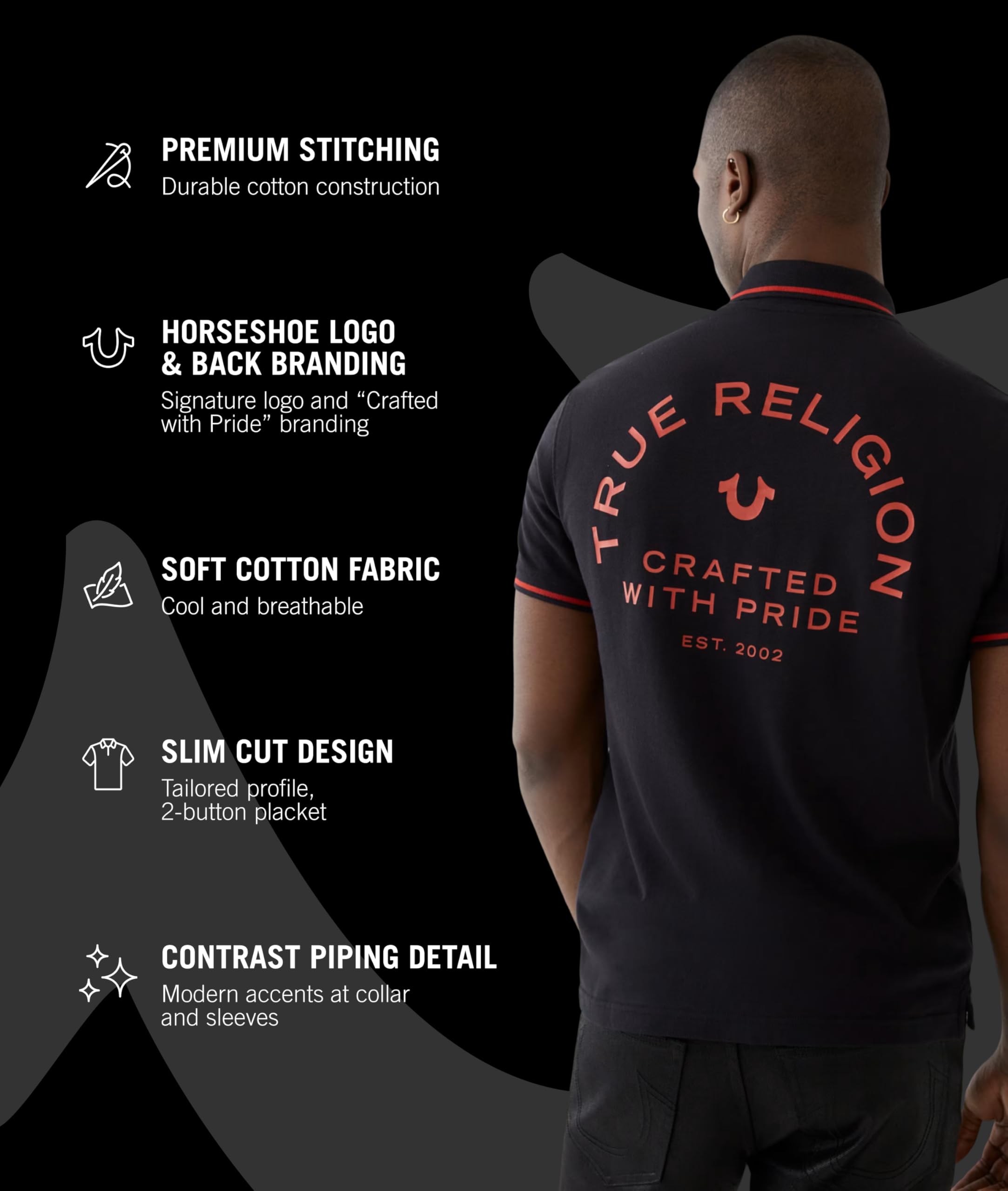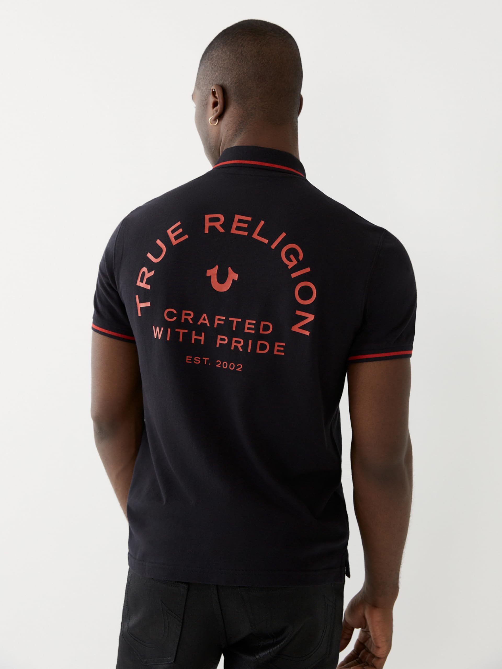 Description The True Religion Men’s Crafted with Pride Polo blends premium comfort with modern style, making it a must-have in men's polo shirts collections. Designed from soft cotton, this slim fit piece provides breathable comfort while maintaining its structure. A 2-button placket and polo collar give it a polished look, while contrast piping at the collar and sleeves adds standout detail compared to standard mens shirts. Signature elements like the embroidered horseshoe chest logo and “Crafted with Pride” back branding showcase True Religion’s craftsmanship. Perfect for casual weekends, workdays, or evening outings, this versatile option ranks high among polo t shirts for men, offering a reliable mix of durability, comfort, and standout style. Available in multiple colors and sizes, it’s built for everyday wear and lasting appeal among shirts for men.