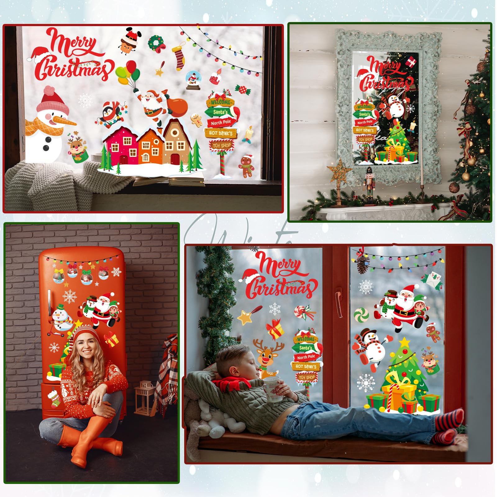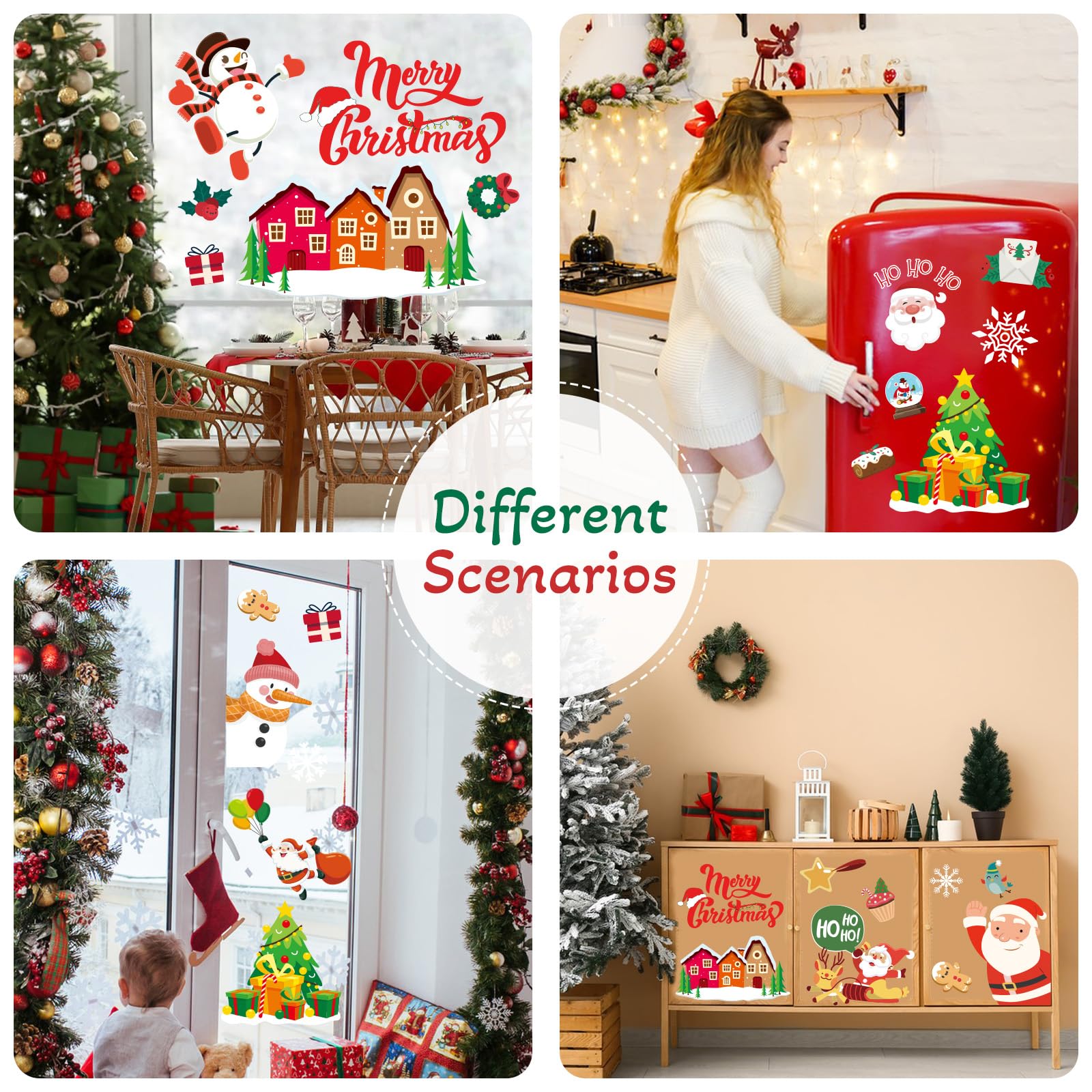 Wide Application For Holiday Decor:These window Christmas decorations are suitable for any smooth surface: windows, mirrors, tiles, refrigerators, cabinets, and more. Use these Christmas stickers for windows to create a fun and festive atmosphere, or decorate with kids to enjoy interactive Christmas clings together