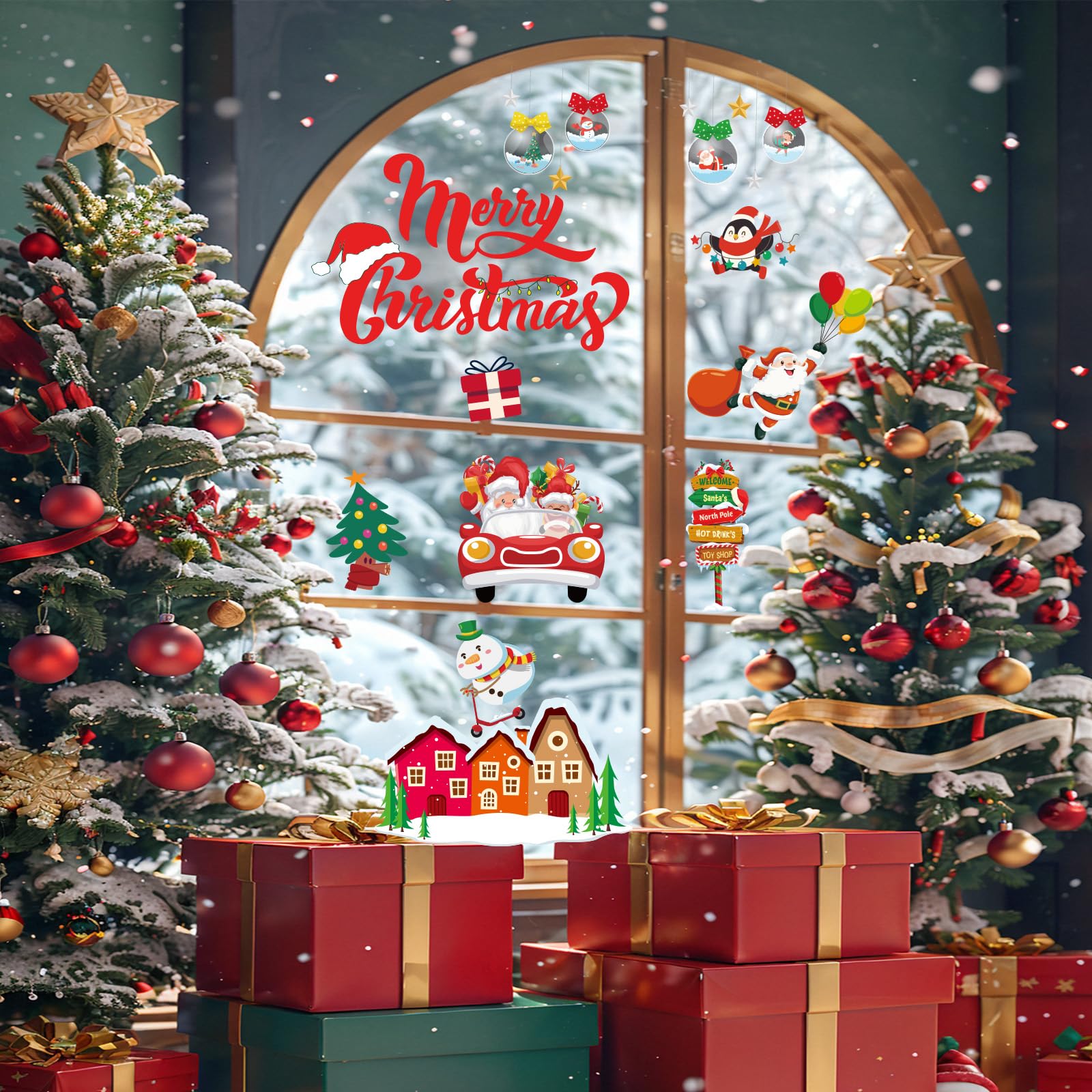 Durable And Long-Lasting Material: Made from high-quality, waterproof PVC, these Christmas window stickers are flexible, tear-resistant, and designed to last through multiple holiday seasons. They adhere smoothly to glass, mirrors, and other smooth surfaces without leaving any residue. Perfect for large Christmas window clings,and festive Christmas decals for windows, they provide vibrant colors and clear designs that brighten any space