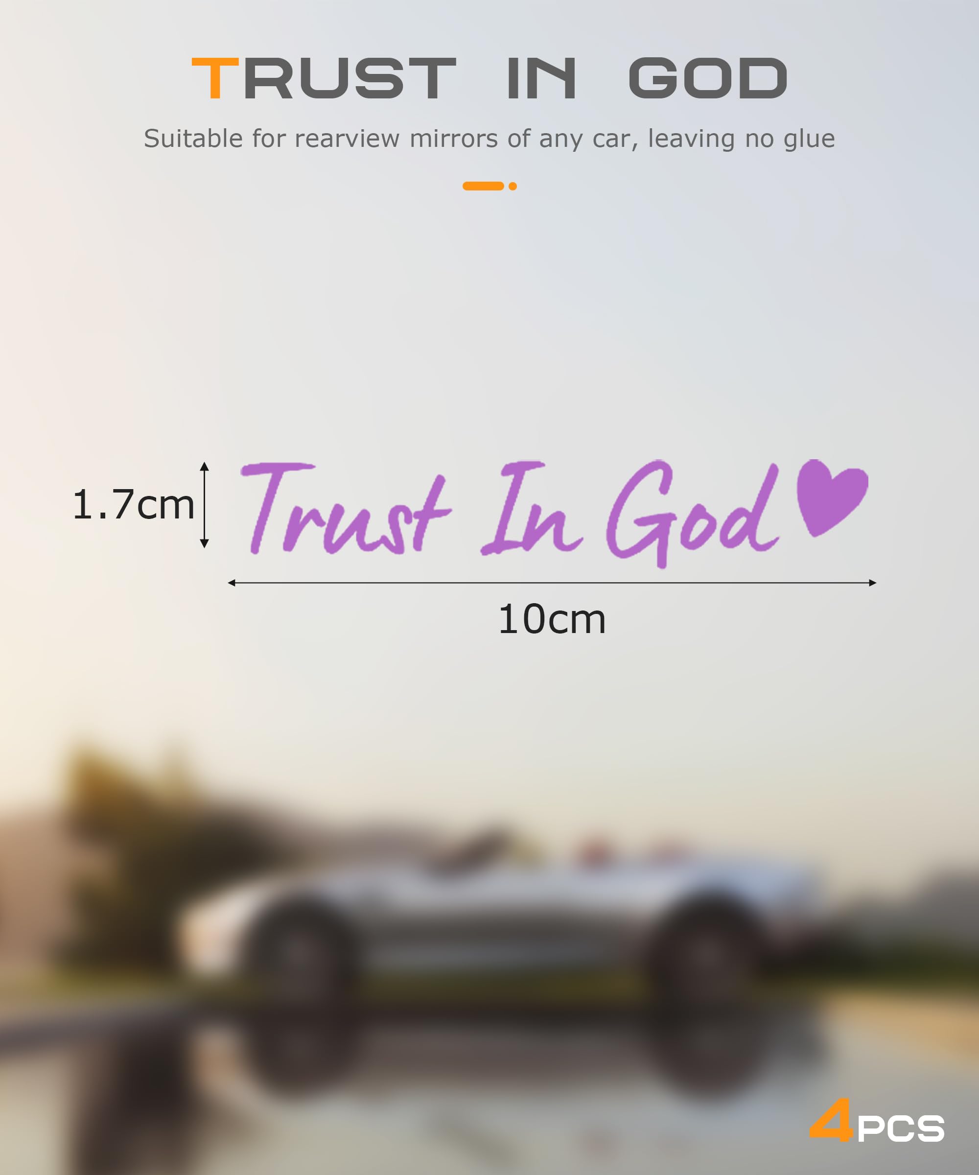 [Package Contents]: You will receive 4 pieces of "Trust in God" car rearview mirror stickers. The information is elegantly presented in clear fonts, which will attract attention on any surface, giving your car a stylish and personalized look.