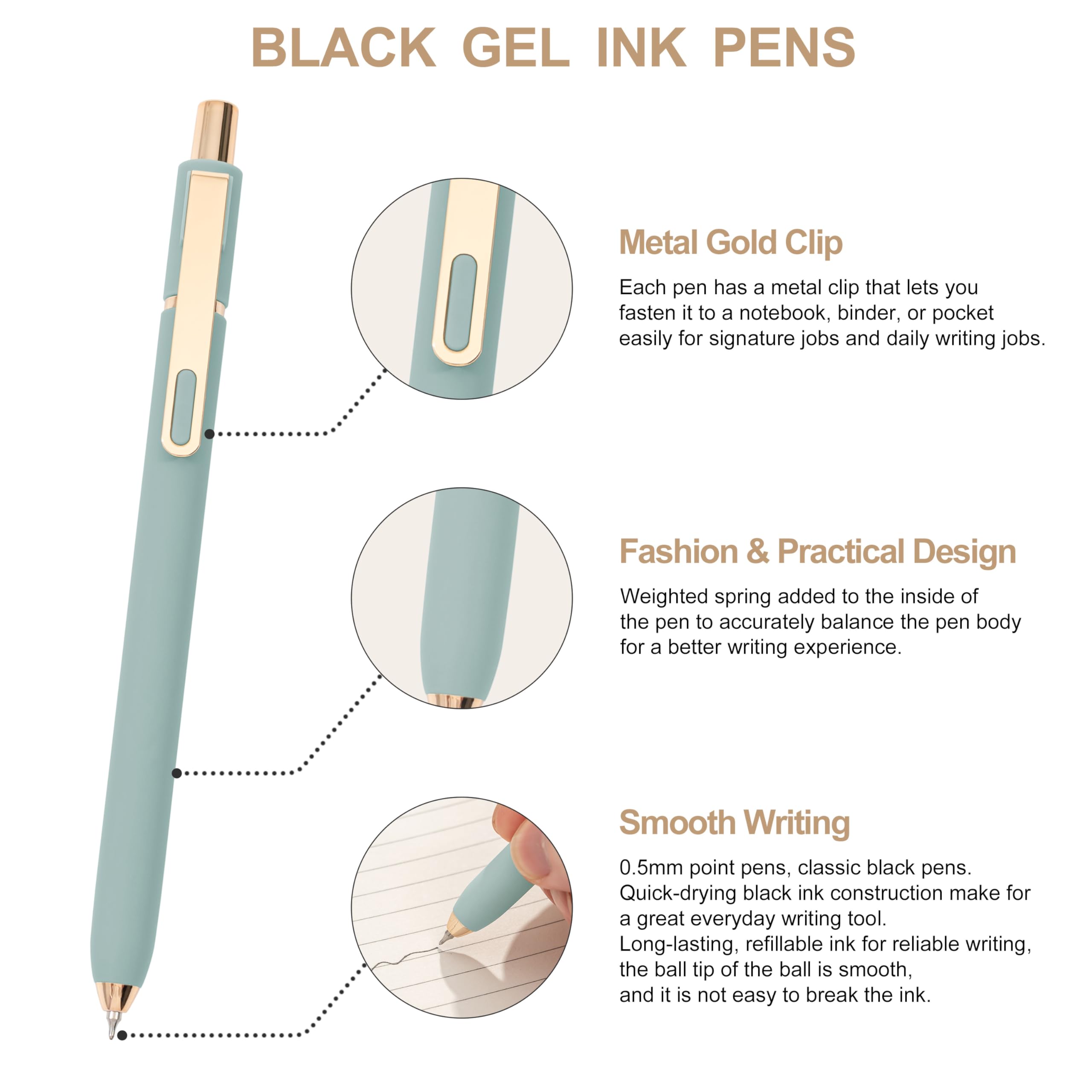 0.5mm Gel Pens: Classic black pens. Vivid, black ink construction make for a great everyday writing tool. The ball tip of the ball is smooth, and it is not easy to break the ink