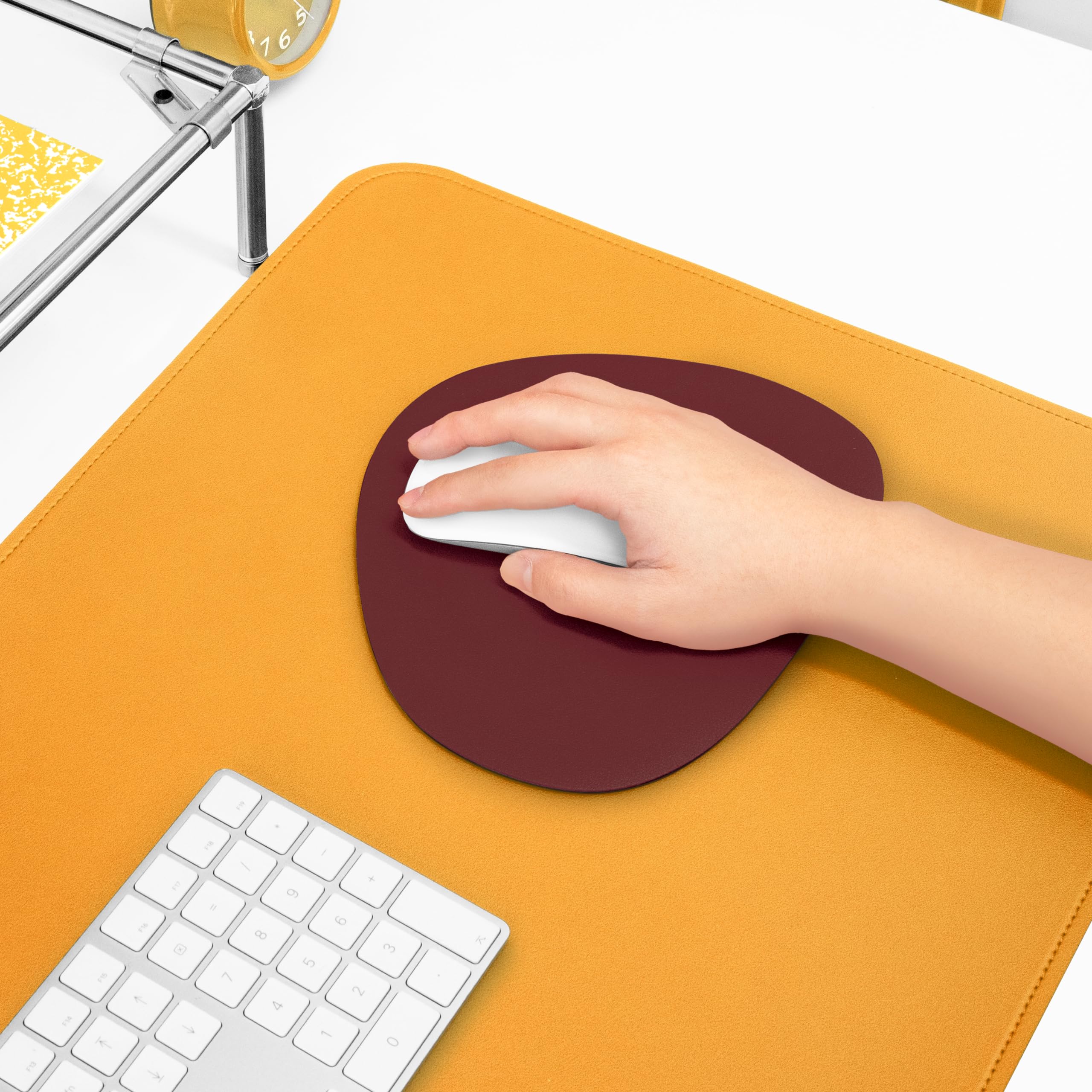 【Smooth Mouse Performance】 Crafted from premium PU leather fabric, our mouse pad provides a smooth and comfortable user experience. Its ergonomic design has been carefully considered for optimal angles, ensuring ease of use. With just the right size – not too large, not too small – it offers a comfortable feel during mouse navigation.