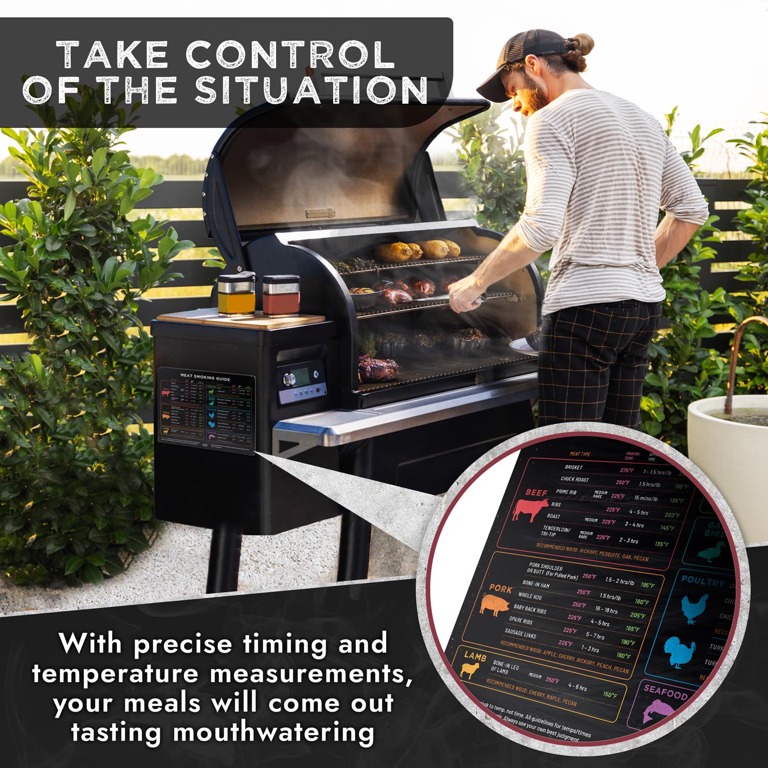 Tested for Accuracy –– Smoking is all about precision. That's why these BBQ smoker accessories magnets include researched and verified meat cooking times and temps. Leave nothing up to chance, and get detailed information on 24 cuts of red meat, game, poultry, and seafood on these meat smoking accessories