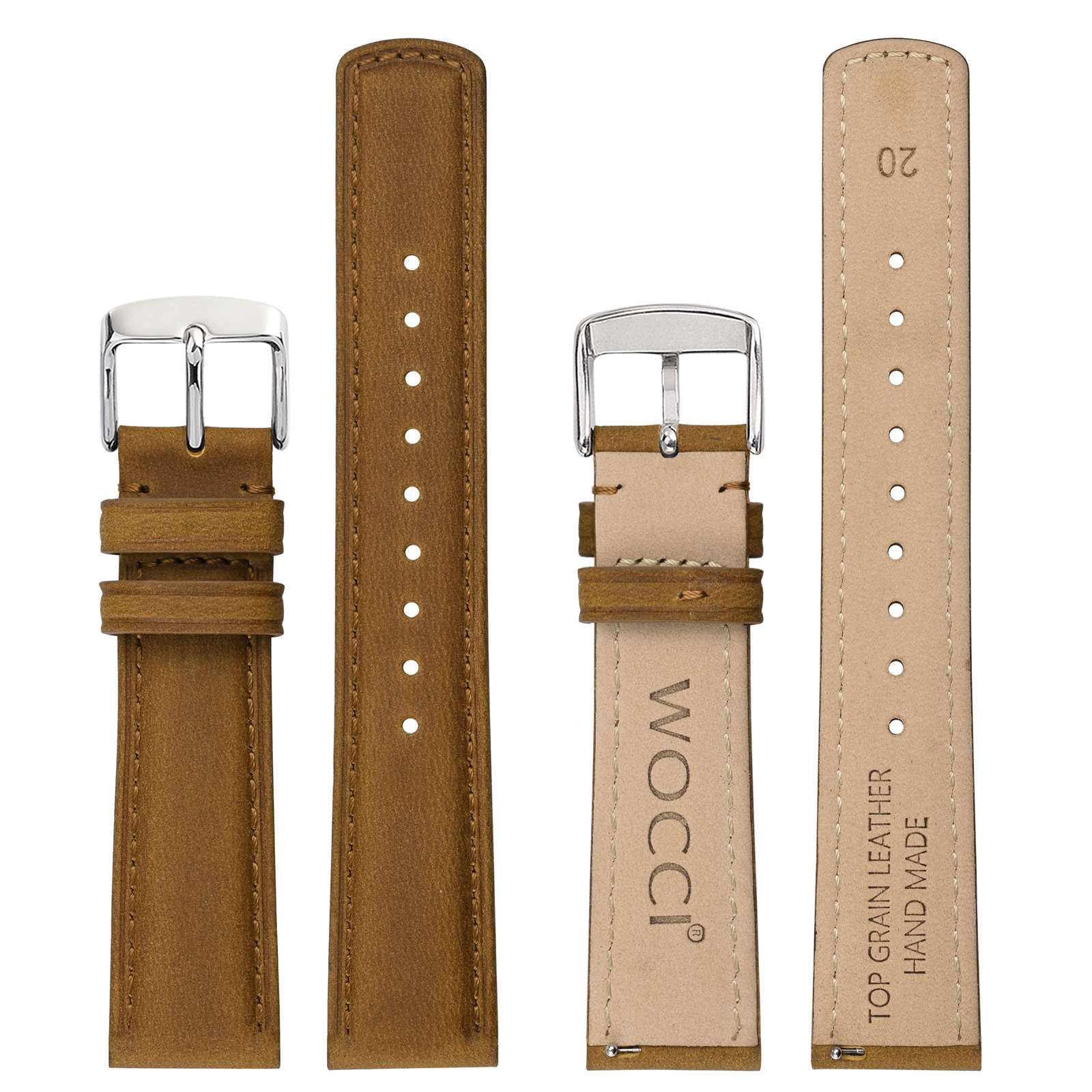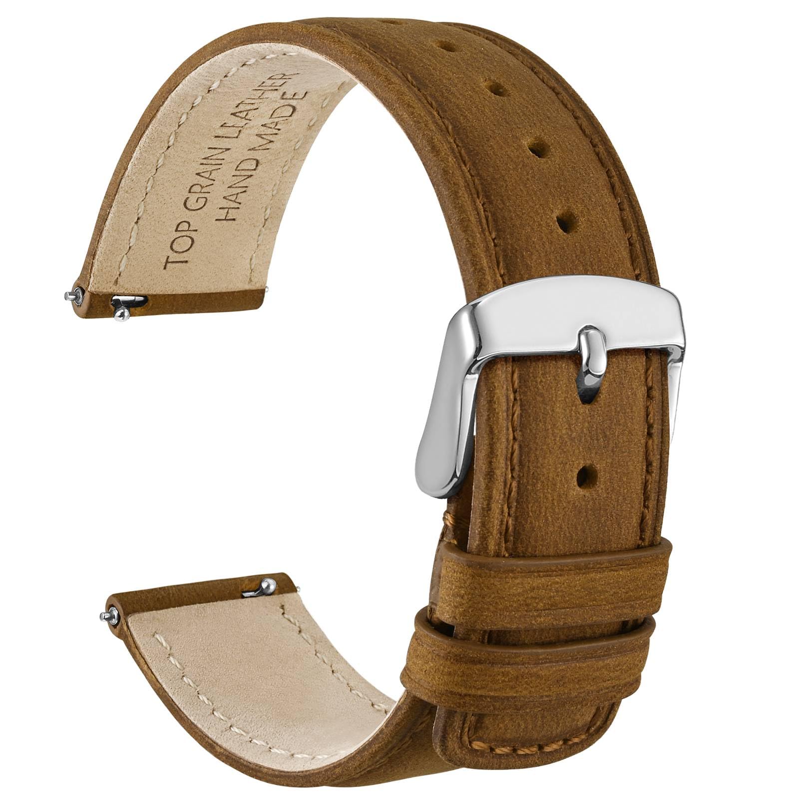 Watch Strap Material: Made of top grain leather in distressed workmanship and the lower layer that touches the wrist is comfortable suede calfskin lining, with classic tone to tone stitch and solid stainless steel buckle. These bands strike the perfect balance between durability and style, making them suitable for both casual and formal occasions