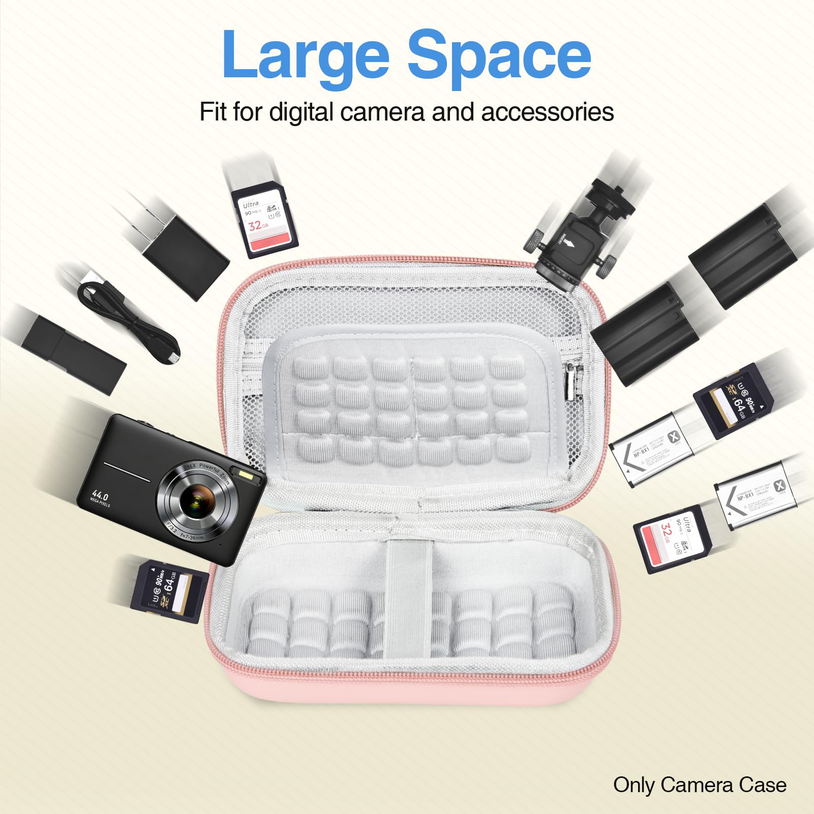 【Large Space】 CASE ONLY! (Digital camera and accessories are not included). EMART Camera Case (Fit Max 6x4x0.9 inch/15.2x10.2x2.3cm(L*W*H) camera)compatible with KODAK PIXPRO FZ55, CAMKORY, Lecran, VAHOIALD, Lecnippy Cameras video streaming camera...., Zipper mesh pocket fits batteries, USB cable and other accessories,2 Card Slots fits 6*Memory SD Cards...