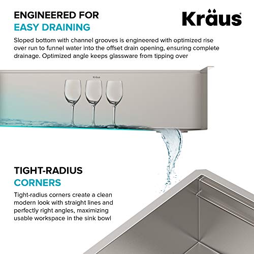SMOOTH SATIN FINISH is easy to keep clean and not prone to corrosion – Gently rounded corners on the bottom of the stainless steel kitchen sink help reduce build-up –EASY DRAINING with sloped bottom and channel grooves to keep water from pooling
