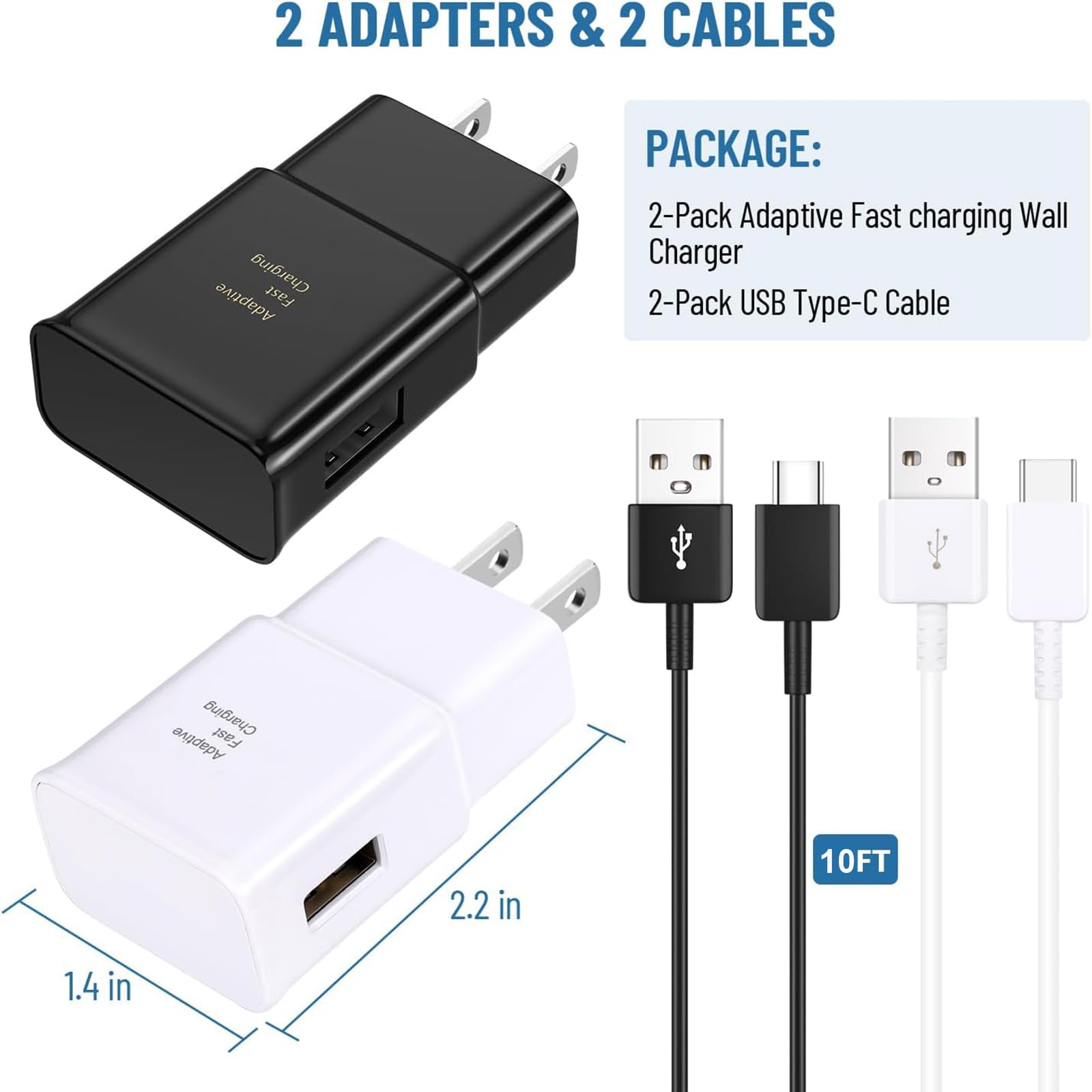 DiHines Samsung Galaxy S23/S22/S22Ultra/S22 Plus/S21/S21Ultra/S21Plus/S10/S9/S8 Charger-Adaptive Fast Wall Charger Adapter with 10FT USB Type C Cable Compatible Samsung Galaxy S23/S22/S22Ultra/S22 Plus/S21/S21Ultra/S21Plus/S10/S9/S9+/ S8/S8 Plus/Active/Note 9/Note 8 and More is specially designed to improve the charging speed for your devices, an ideal buddy for office, game, daily life, outdoor, long distance journey & business trip. Compatible Quick Charge Devices Include: -for Samsung: Galaxy S23/S23Ultra/S23+/S22/S22Ultra/S22 Plus/S21/S21Ultra/S21Plus/S10/S9/S8/S8+/S9+/S10+/Note 8/Note 9 -Google: Pixel 2/Pixel 2 XL/Chromebook Pixel (2015) -LG: G5 / V10 / V20 / V30 / G5 / G6 / G7 -and many more (consult your device's technical specs to confirm compatibility) Note: -If your device does not feature this technology, it will charge at normal speed -It's very normal that the charger gets hot when charging. ADC activates itself when your device's battery is low to fast charge. As your device's battery gets fuller, ADC will automatically slow down the charging. Therefore, the charger's temperature will drop. So it's safe to use. Specification: - Input: AC100-240V 50/60Hz - Output: DC 9V/1.67A or 5.0V/2.0A - Interface: adopt the integrated injection molding technology, stronger and durable. Package included: -2 x fast wall Charger -2 x 10ft USB Type C Charging Cable OUR SERVICE -.if there are any quality problem, please contact us
