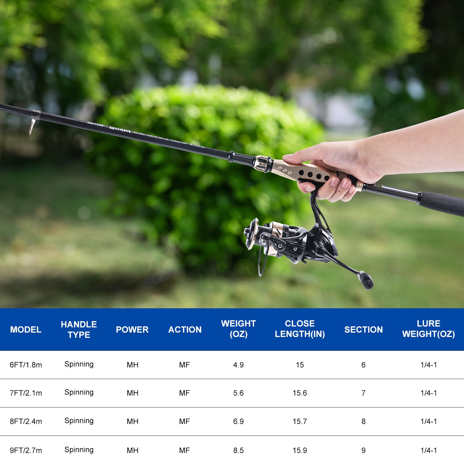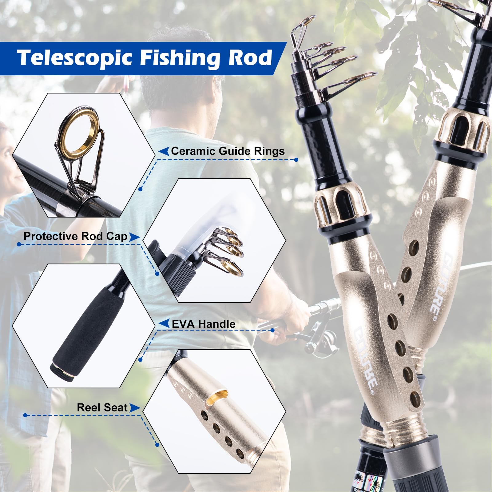 Goture ELITARA Fishing Rod and Reel Combo - 9FT Telescoping Fishing Pole Portable Travel Kit with Carrier Bag for Freshwater Saltwater