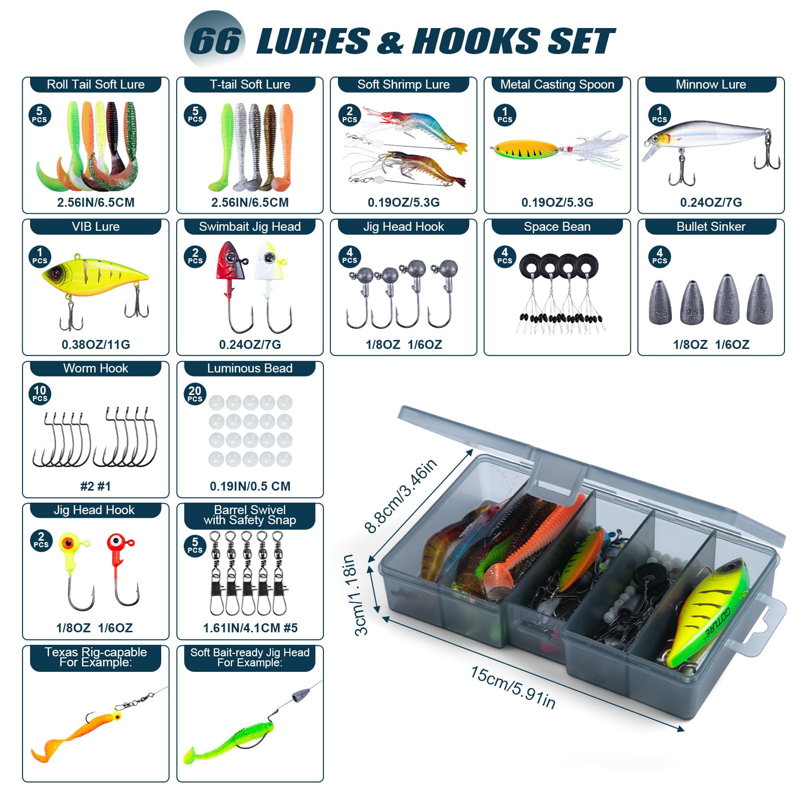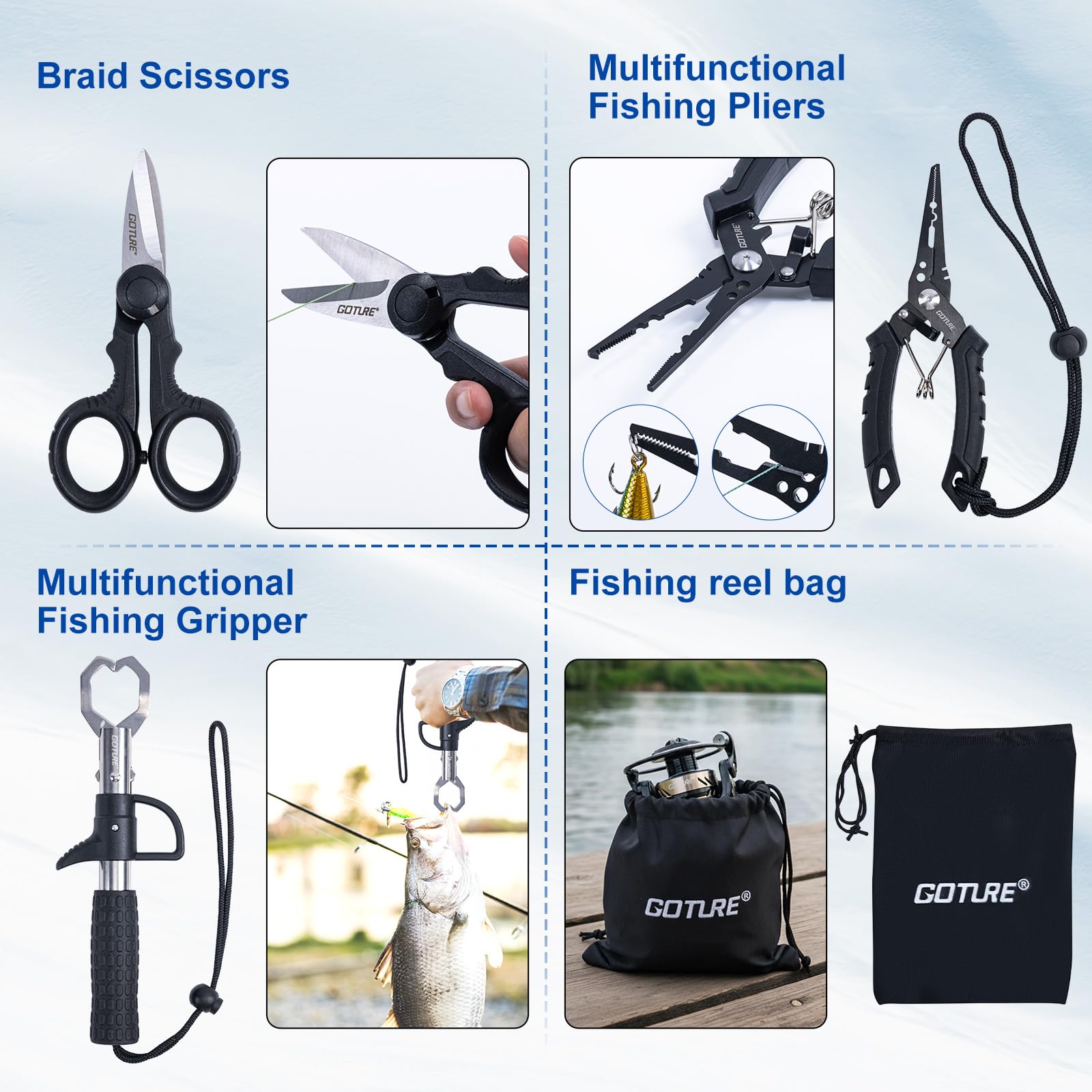 【All - in - One Complete Set - Ready to Go!】This set includes an extensive accessory package: a box of lures, 3 practical fishing tools (hook remover/pliers, fish gripper, scissors), a 4 - strand braided PE fishing line (10m with color change), a reel bag and a storage case for easy transportation and organization.