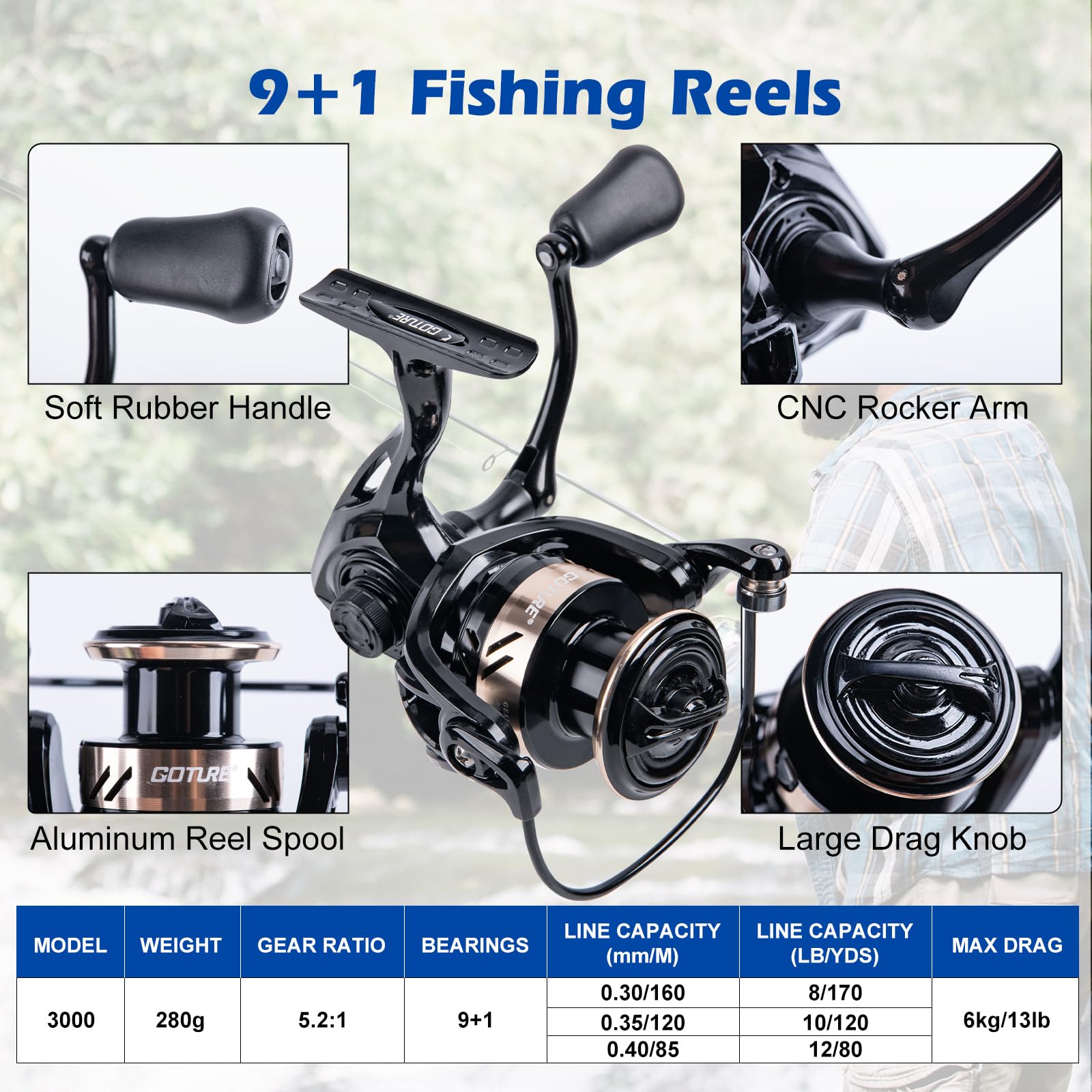 【High-Speed 9+1BB Spinning Reel】Engineered with a high-strength nylon and aluminum alloy body for maximum rigidity, it features a large, quick-adjust drag knob and an instant anti-reverse switch for total control over powerful fish. The 9+1 stainless steel bearing system ensures incredibly smooth operation, while the vented metal spool reduces weight for better performance. This complete kit includes a stylish reel bag for protection and portability.