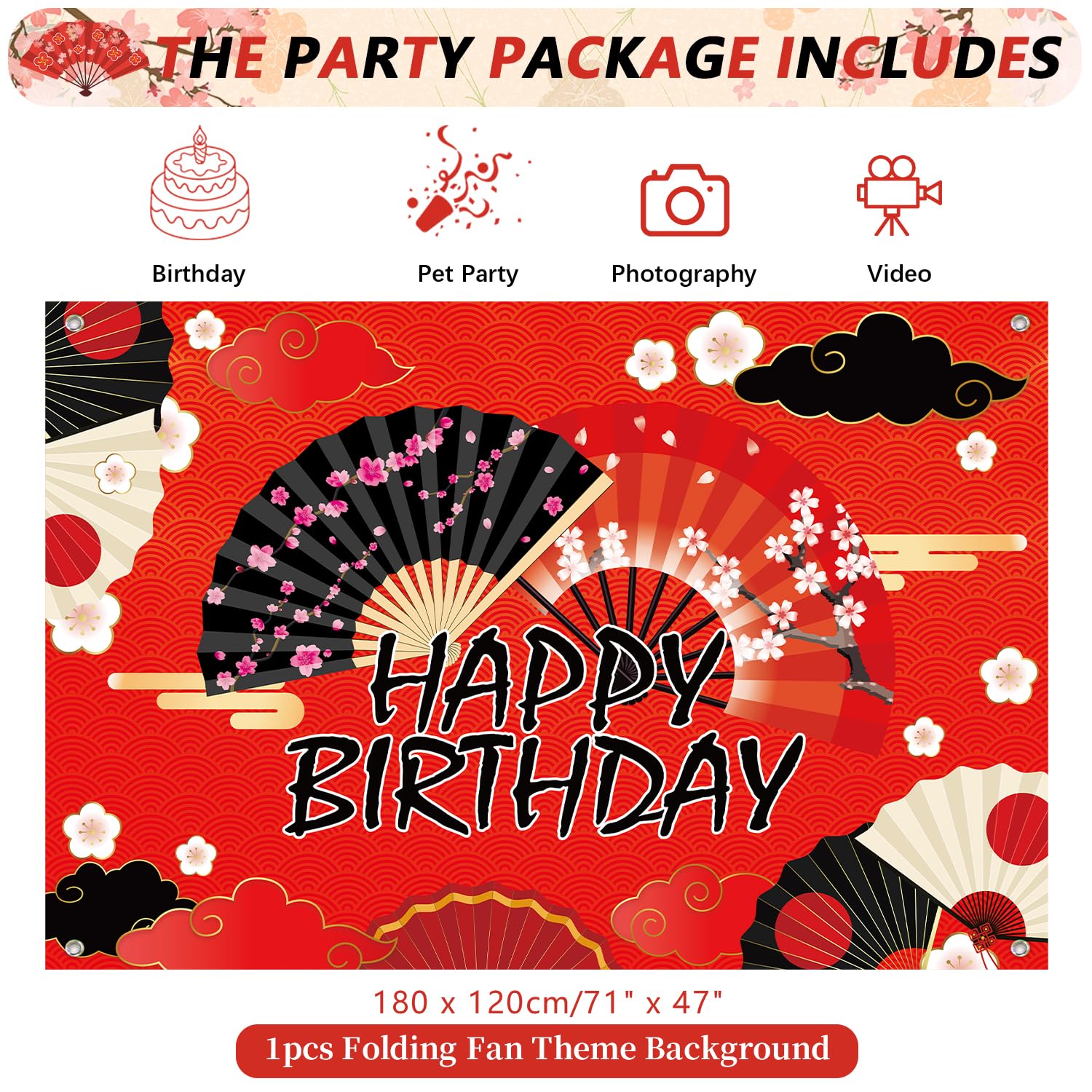 Chinese Japanese Style: This folding fan birthday party decoration has a Chinese Japanese party style, such as a Chinese folding fan and Japanese cherry blossom, these folding fan decorations can immerse you in the birthday party atmosphere of China Japan at your birthday party.