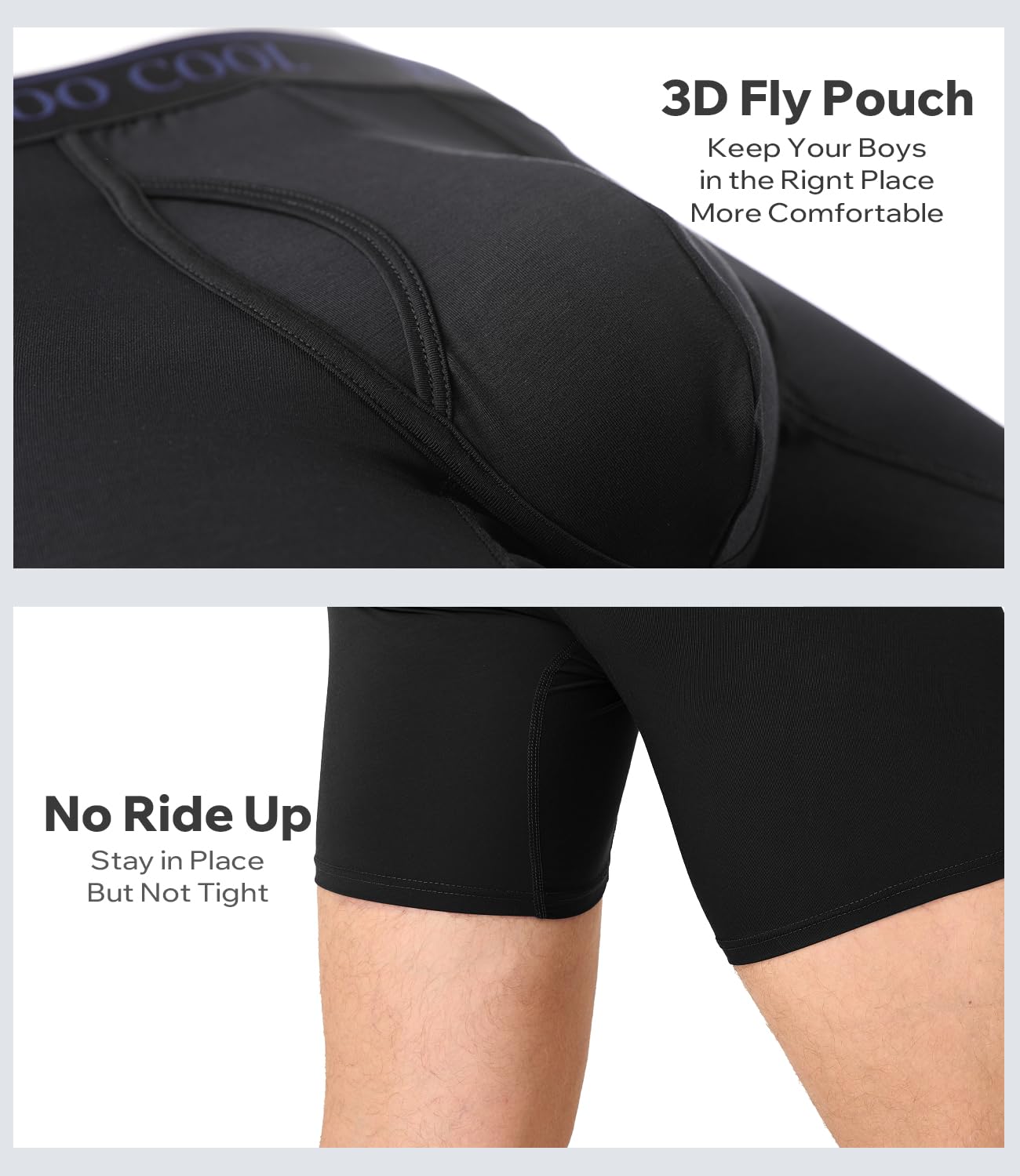 Stay-Put Legs & Anti-Ride Fit - Engineered flat-lock stitching and ergonomic pouch prevent leg roll-up and eliminate wedgie.
