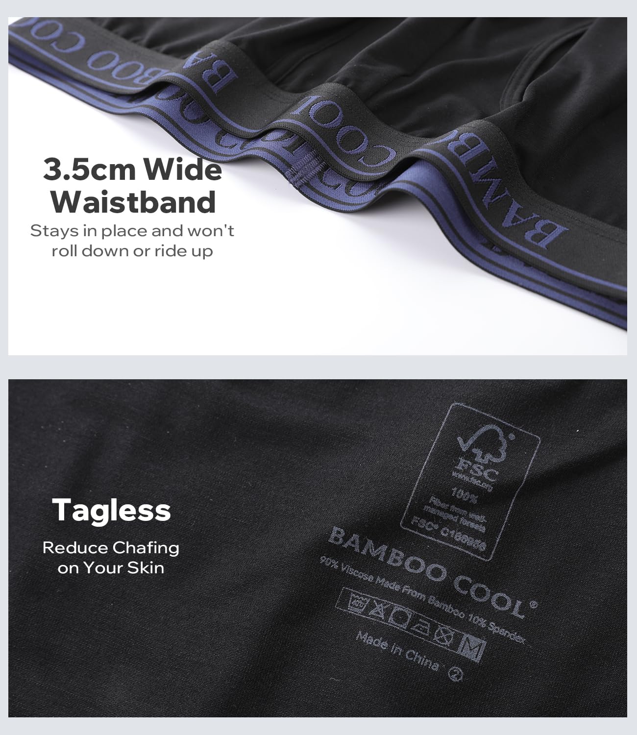 Premium 50S Bamboo Fabric - Finer than cotton with silky smoothness, naturally breathable and moisture-wicking for all-day dryness.