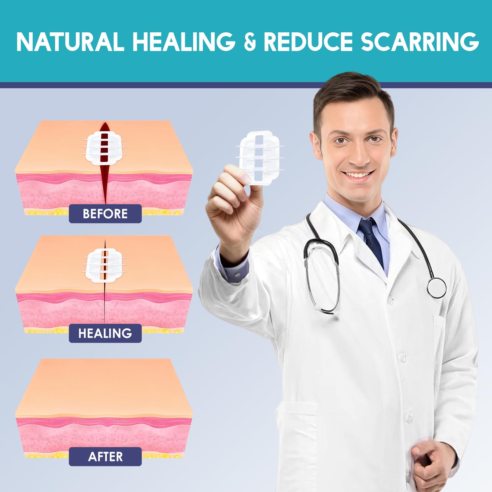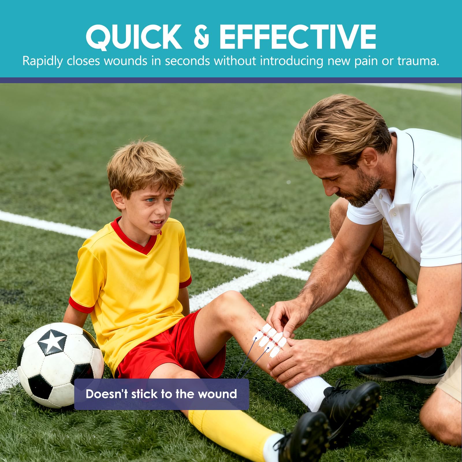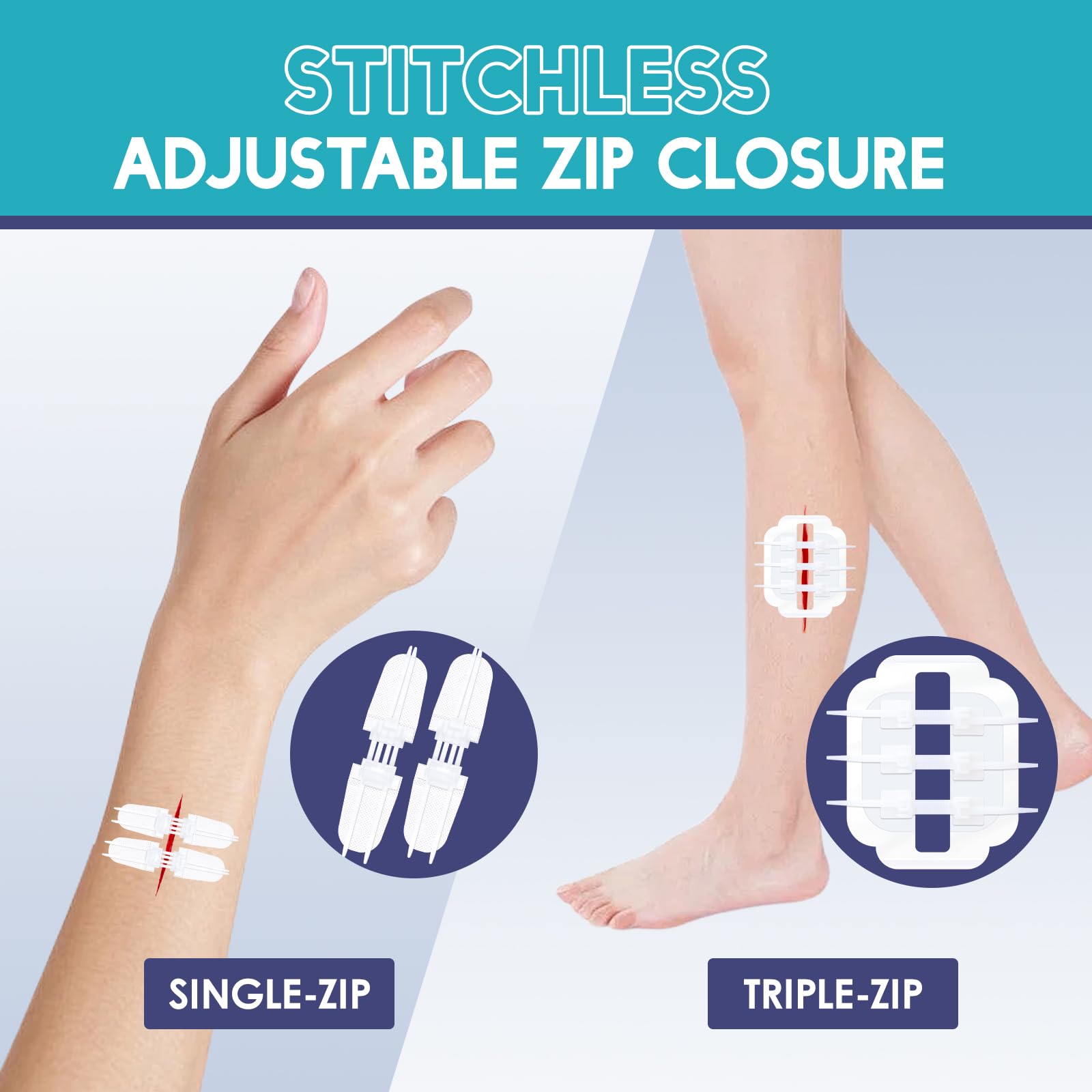 【EASY APPLICATION & REMOVAL】The laceration closure kit features user-friendly design, making it ideal for household use. When used as directed, the wound closure strips can be applied or removed within seconds.