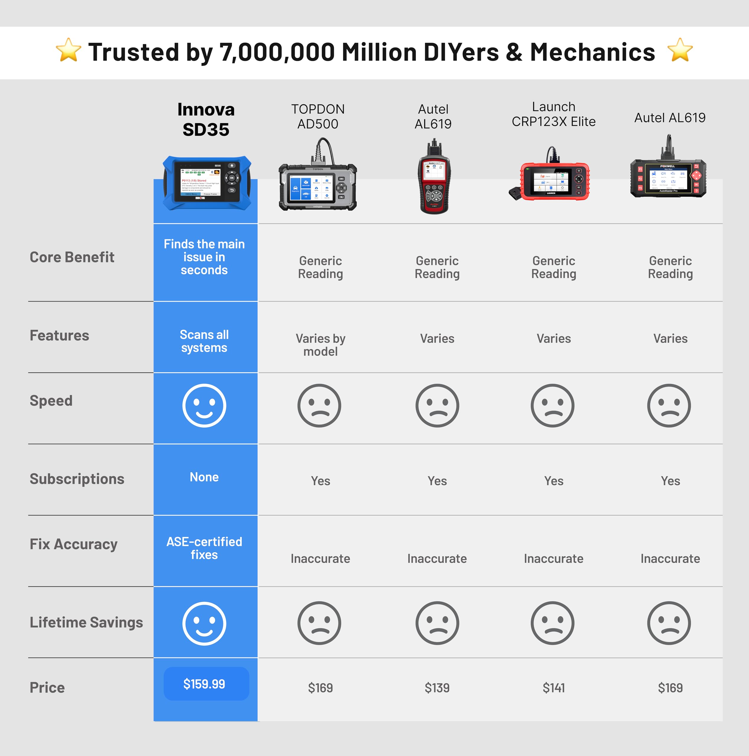 NO SUBSCRIPTIONS – VERIFIED FIXES WITH FREE APP – Unlike other OBD2 code readers, the SD35 provides verified fixes based on real-world repairs from ASE-certified mechanics. Use the RepairSolutions2 app, trusted by 4M users, on iPhone & Android to get step-by-step repair guidance, suggested parts, and cost estimates—no extra fees or hidden subscriptions!