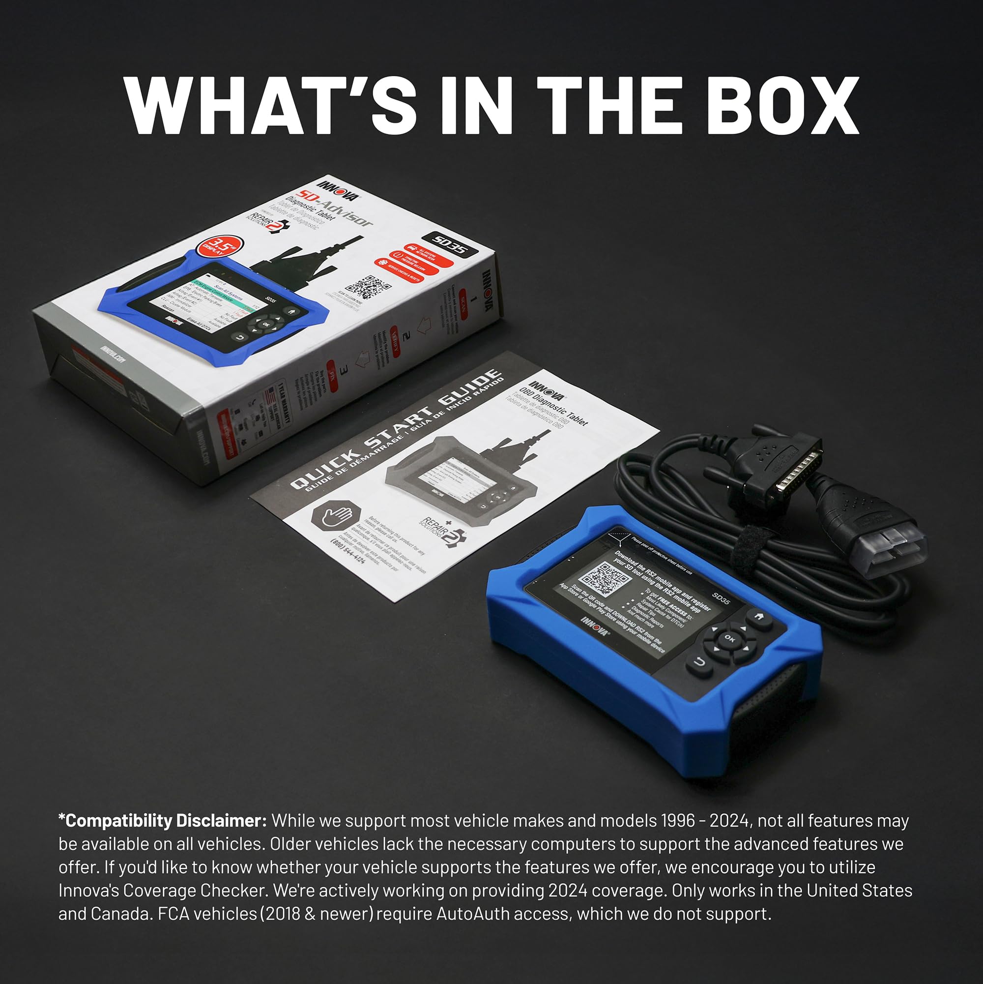 WIDE VEHICLE COVERAGE (1996 & NEWER CARS & TRUCKS) – This OBD2 scanner Bluetooth tablet is compatible with Toyota, Ford, Honda, Chevrolet, Nissan, Dodge, and more. However, feature coverage may vary. Please use Innova's Coverage Checker to verify coverage.
