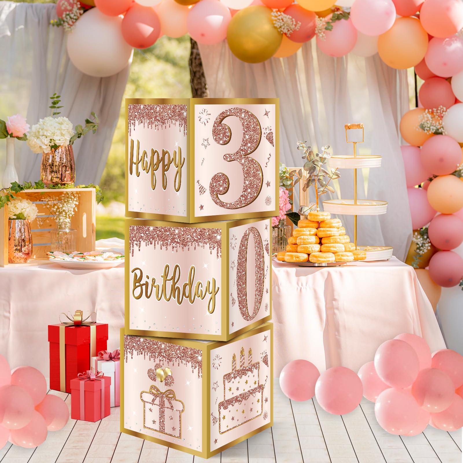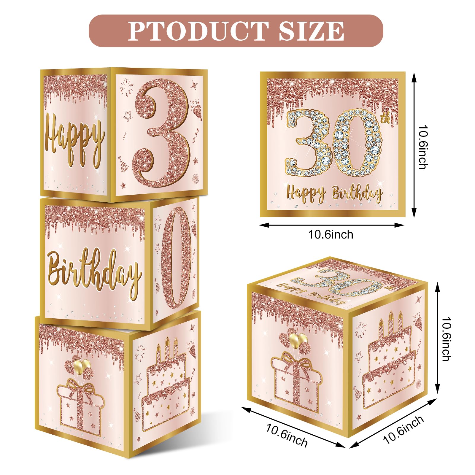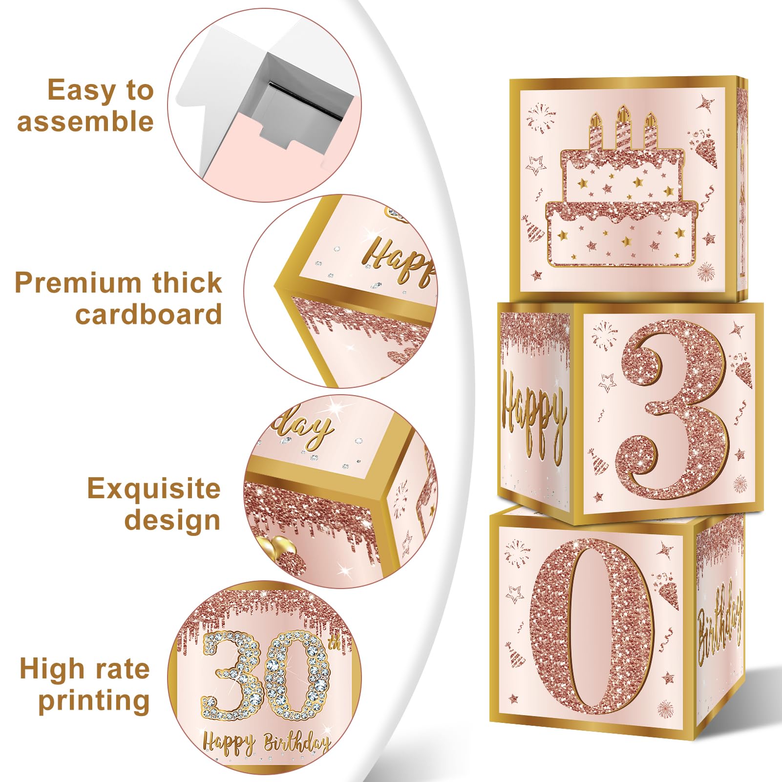 [You Will Get] -3 Pcs pink rose gold 30 birthday balloon boxes, 10.6 inches cube, enough to decorate your 30th birthday party, Make great memories for you and your family! (Note: This set does not include balloons)