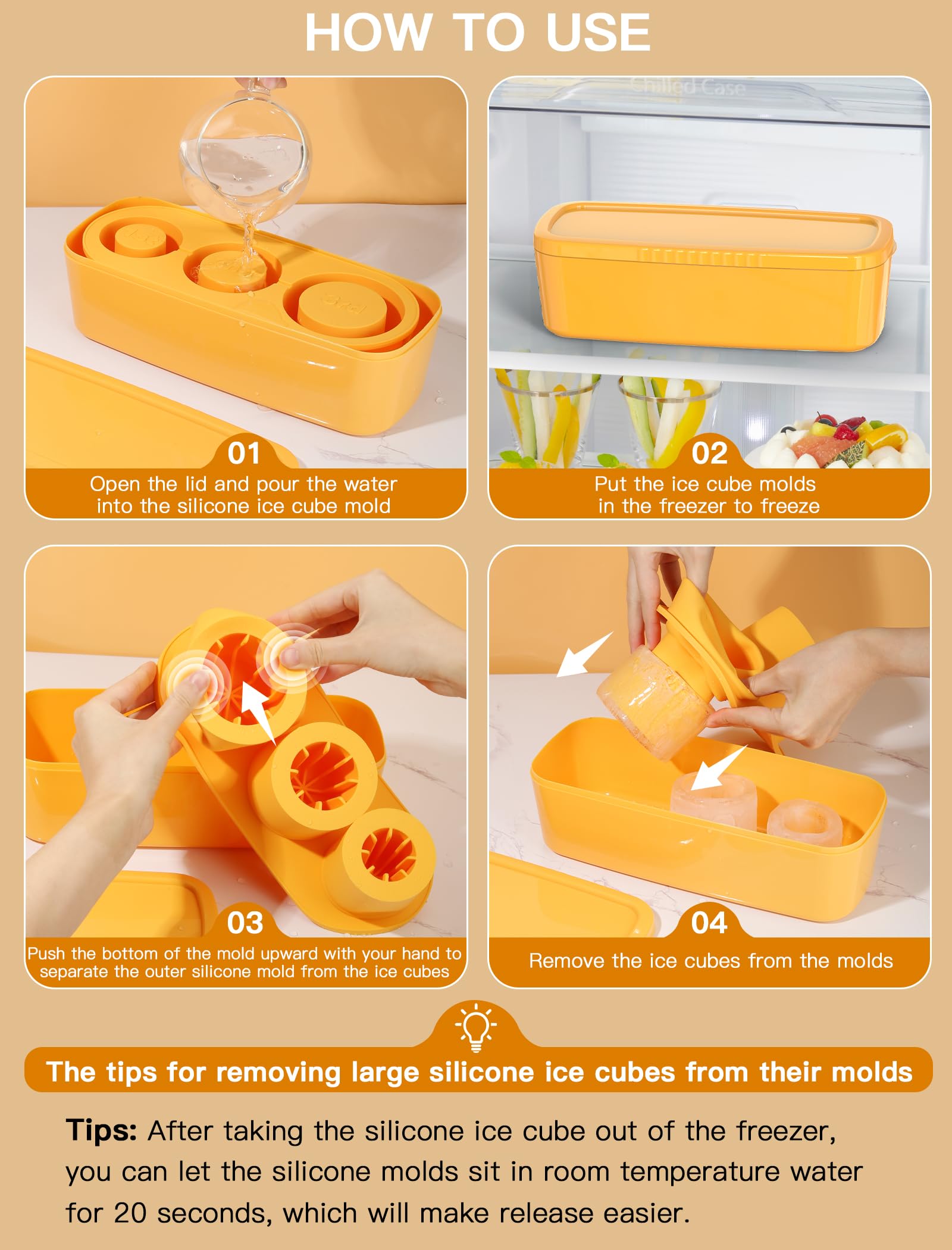 Easy to Operate - The flexible silicone mold makes it easier to remove the ice cubes.Just peel off the outer mold and squeeze the cap to release your fresh ice. It's super durable, way better than those flimsy plastic trays and easier to clean and store.Perfect for making your favorite chilled drinks!