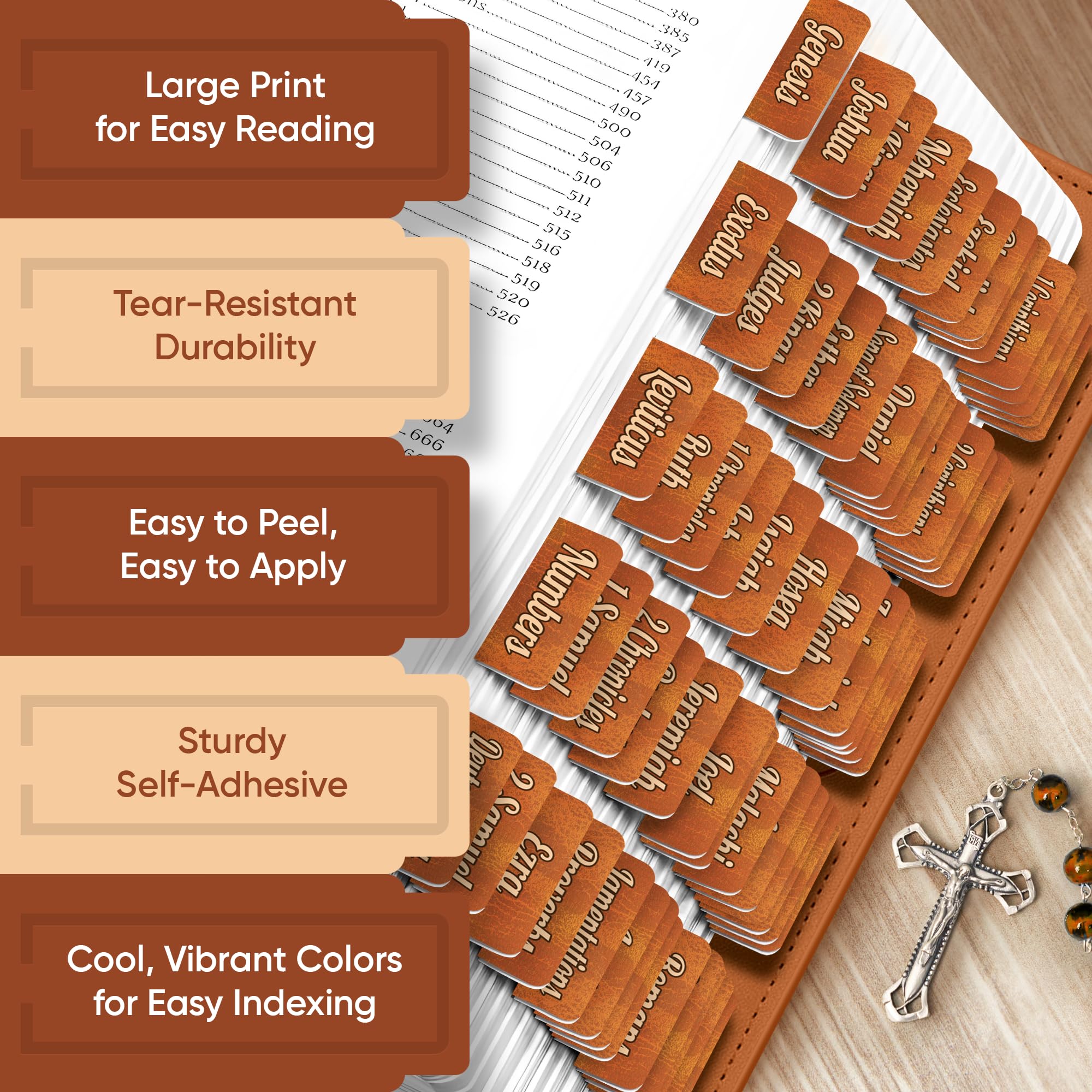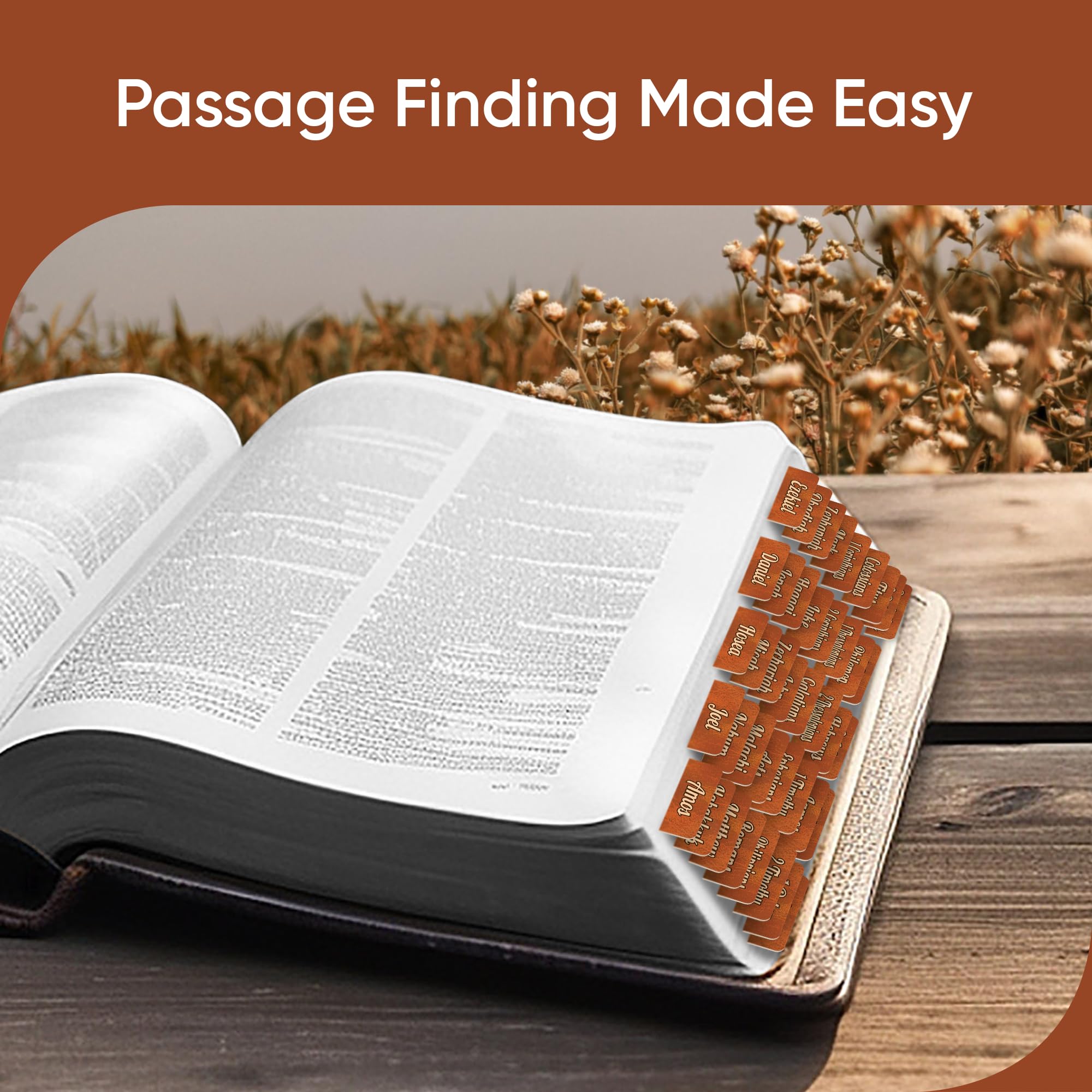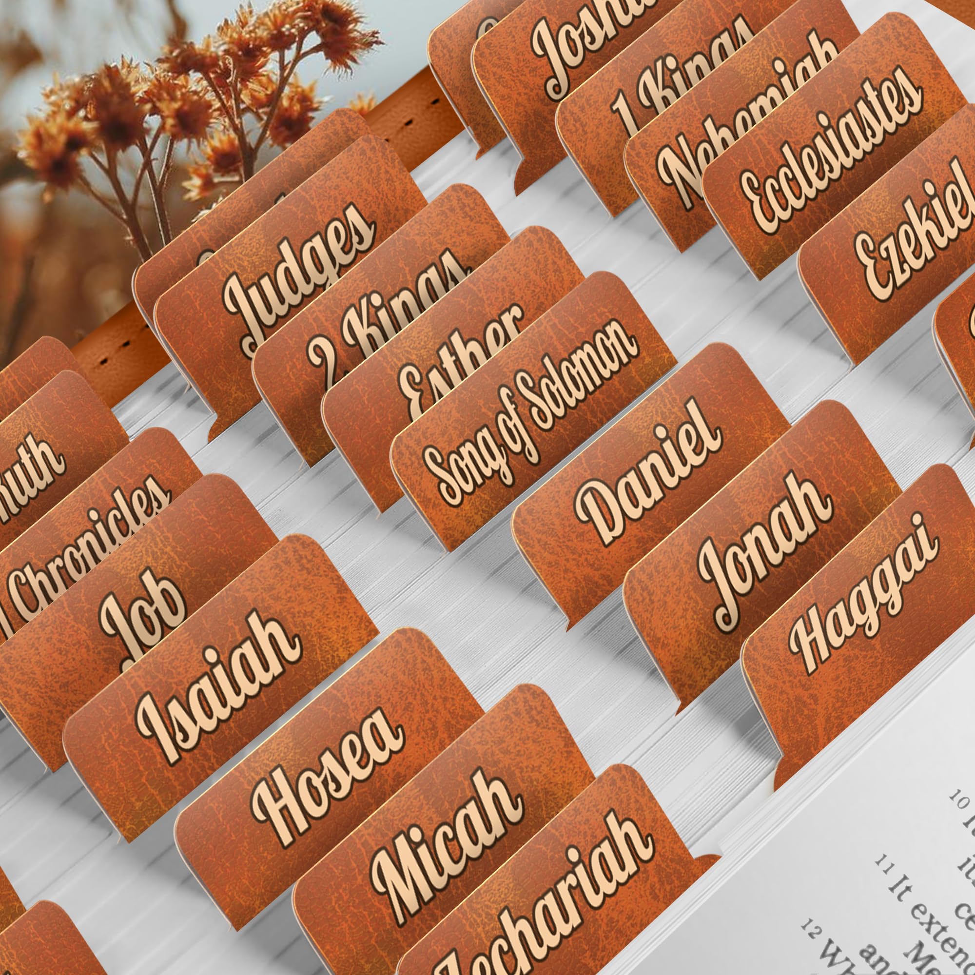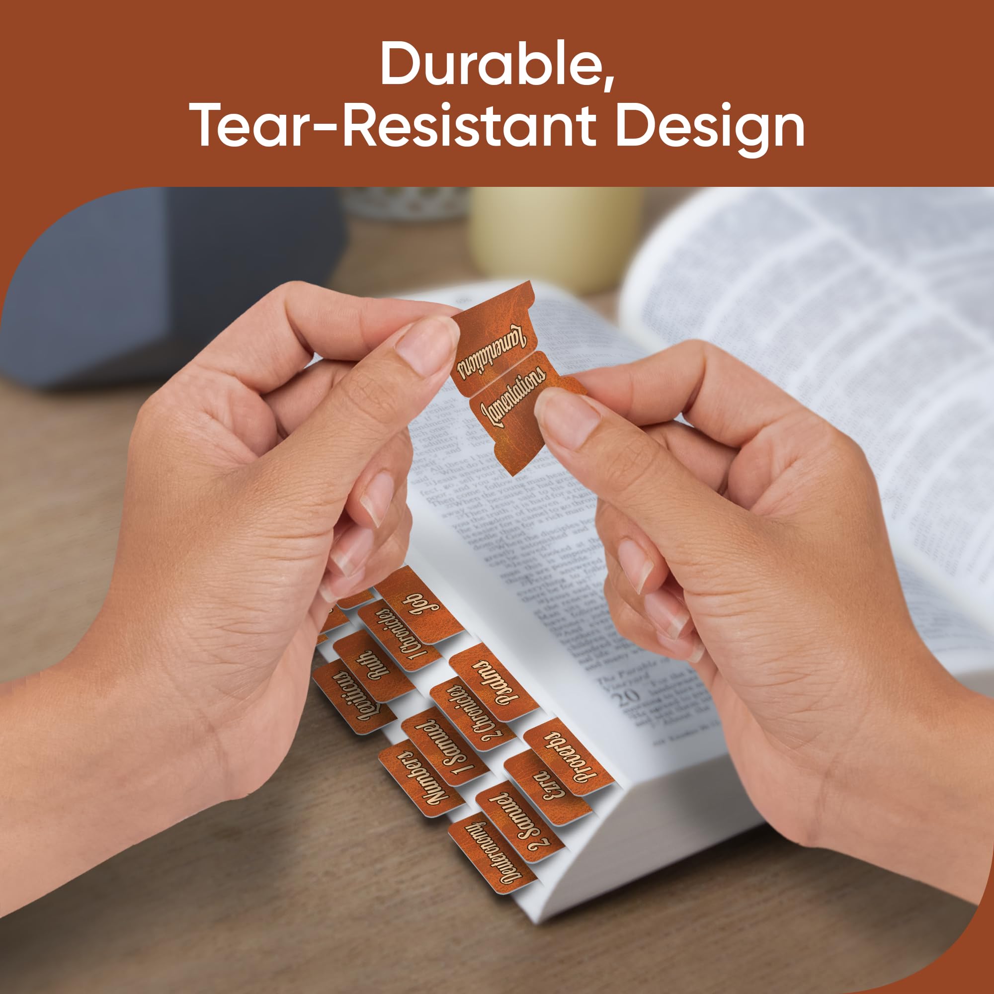 **NOT LEATHER** - GET THE LOOK BUT NOT THE THICKNESS: Each of these Bible tabs are made from premium paper and coated in plastic for a water-resistant, durable finish. The strong design and construction make these Bible tabs ideal for everyone. The design is made to look like leather grain.