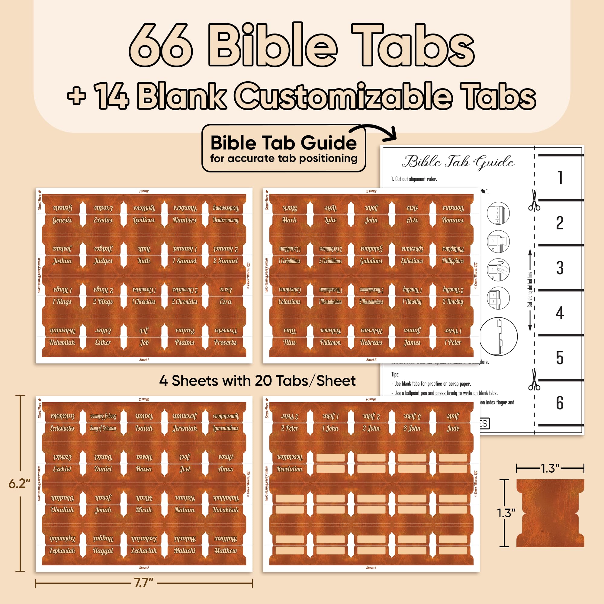 EASILY STUDY YOUR BIBLE: Find Old and New Testament Books in your Bible quickly with these convenient Bible index tabs. Our set includes 80 Bible tabs with 66 of them pre-labeled in large print and 14 blank to mark your favorite passages or appendices.