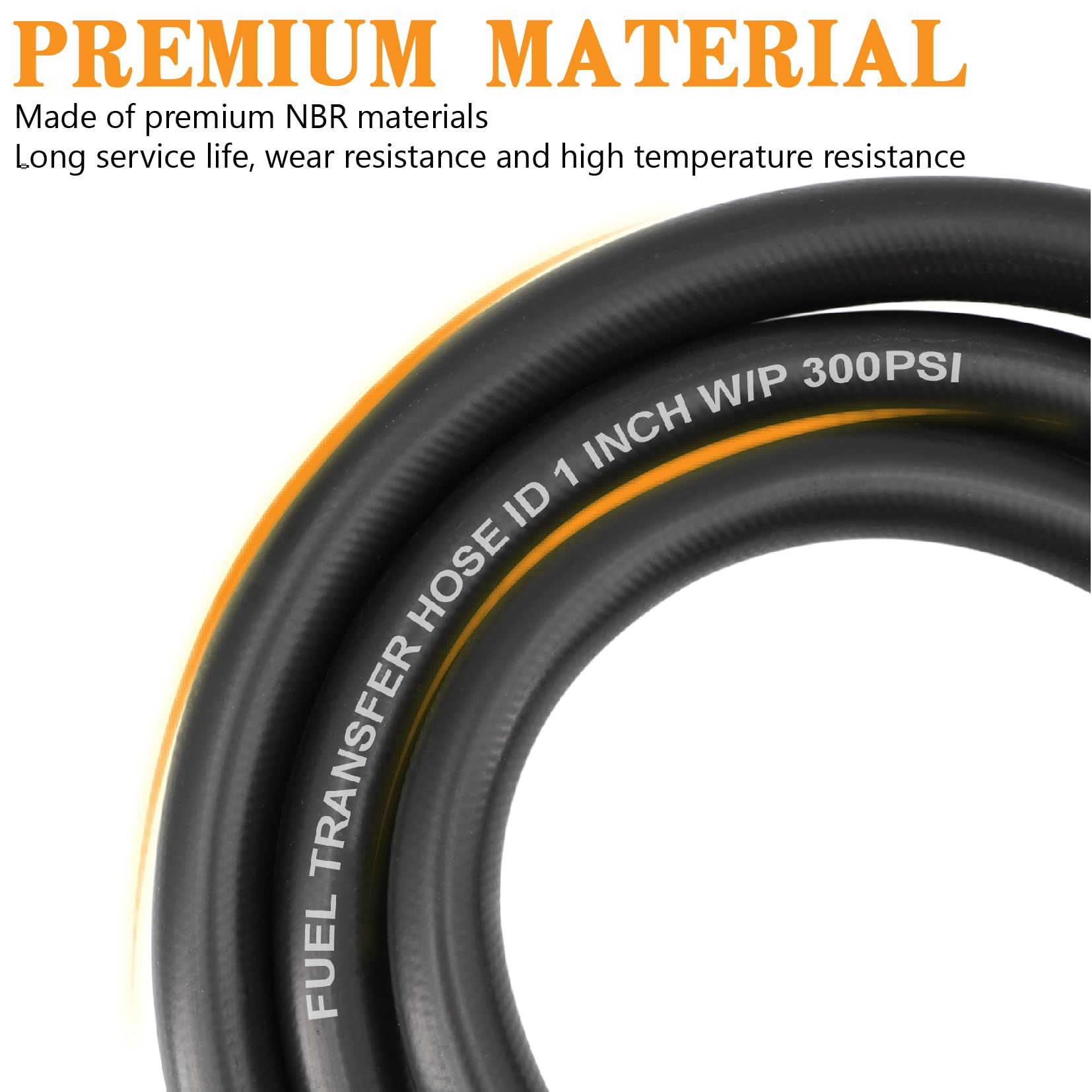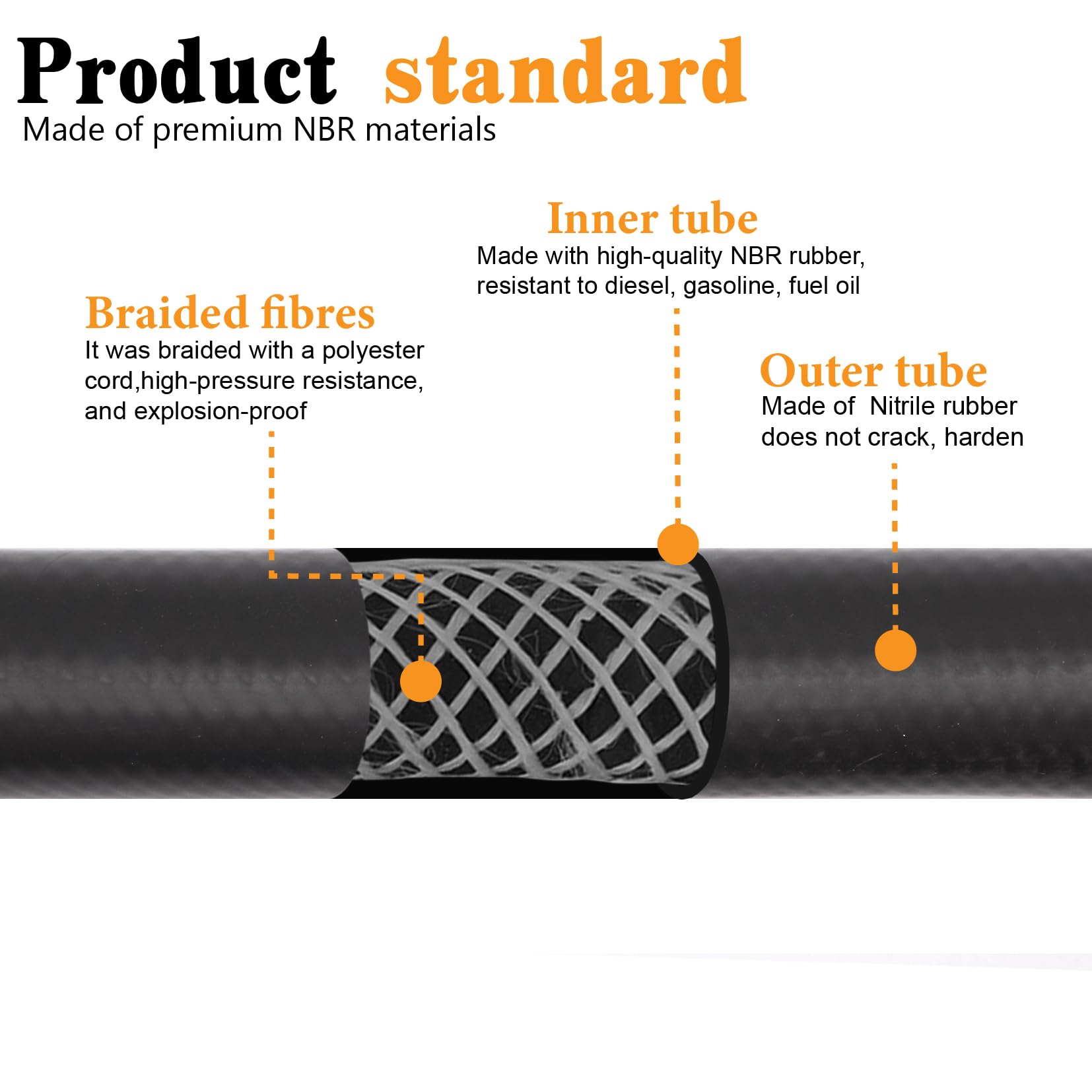 The fuel transfer hose is designed to withstand the effects of various fuels and fluids. Nitrile rubber inner,stainless steel braid in the mid,PVC and Nitrile blended rubber outer.
