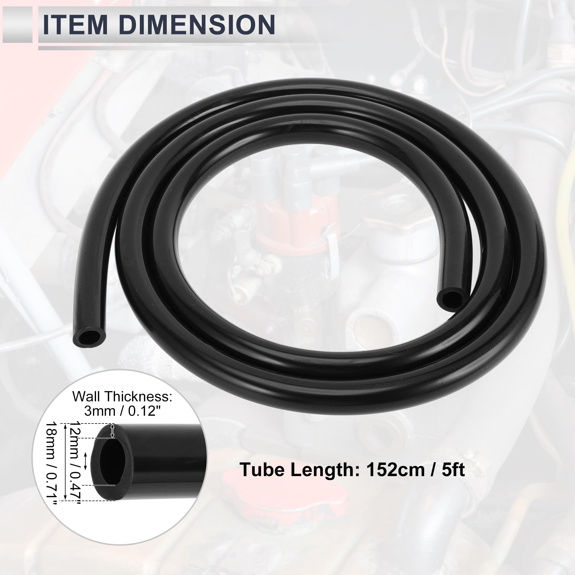 Functionality:Inner diameter: 12mm / 0.47", Outer diameter: 18mm / 0.71", Tube Length: 152cm / 5ft, Wall Thickness: 3mm / 0.12", Please see product images for more detailed size information and check the size carefully before buying.