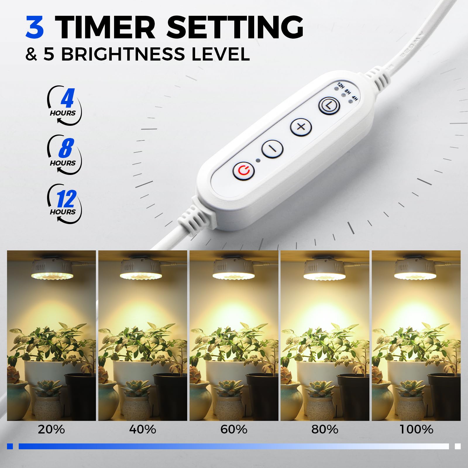 3 Timer Setting & 5 Brightness Levels: The Barrina grow light for indoor plants offer 3 convenient settings (4H/8H/12H) and 5 dimming levels. This functionality allows you to create the perfect lighting schedule and promote good development and maximizing yield