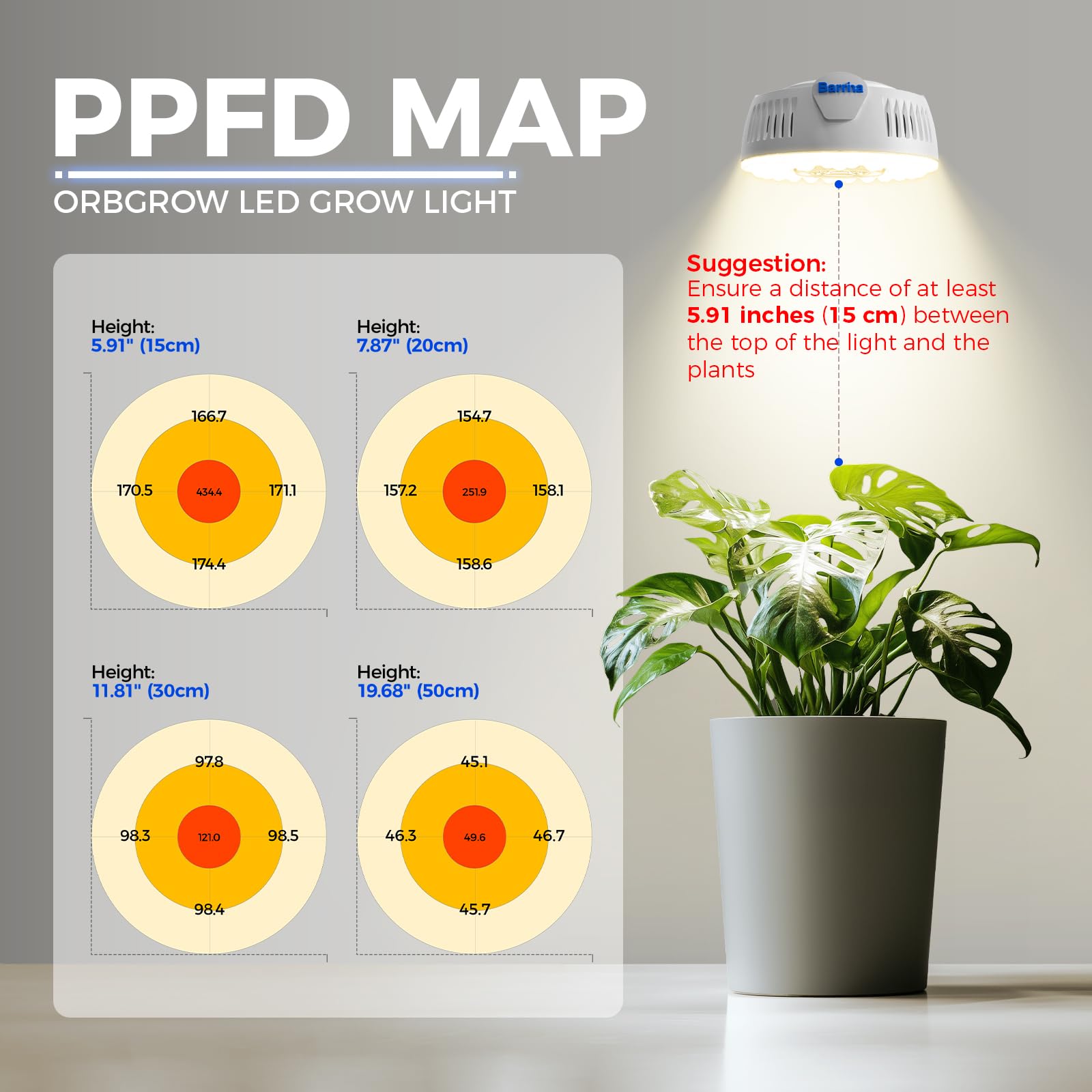 Optimal Distance Guide: Maintain a minimum distance of 5.91 inches (15 cm) between the top of the light and the plants to ensure optimal growth and avoid overheating