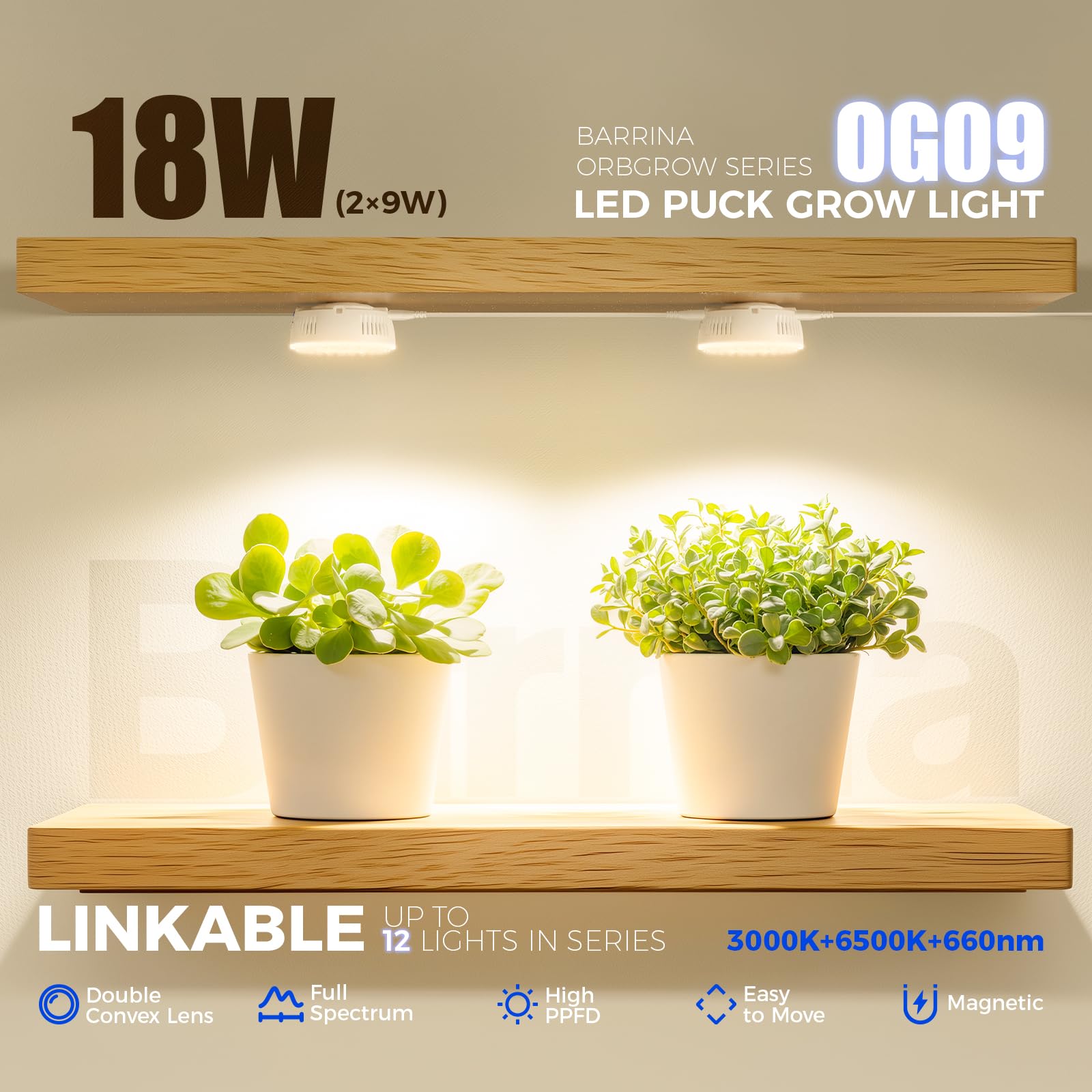 Red Wavelength 660nm with CRI 89: The Barrina Puck Grow Light features a 660nm red wavelength with a CRI of 89, delivering targeted spectrum efficiency for optimal photosynthesis. Ideal for microgreen, fruiting, foliage plants and flowering species etc., this grow light supports healthy growth from seedlings to bloom, ensuring your indoor garden flourishes