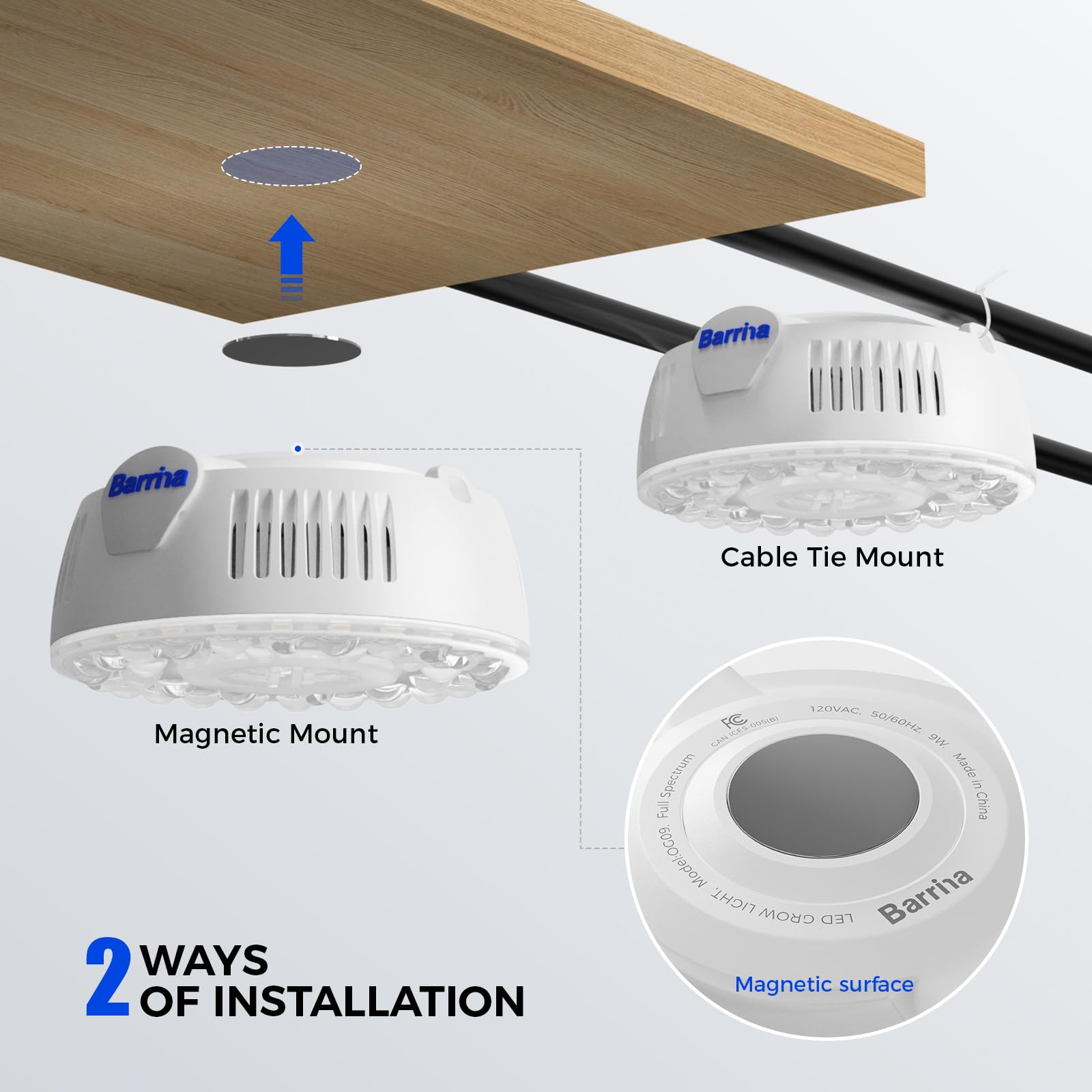 Linkable & Flexible Mounting Options: The Barrina Orbgrow OG09 grow light connects up to 12 LED grow lights with 7.87 inches and 47.24 inches cables. It offers flexible mounting options, including magnetic mounts or zip ties, for easy installation. This design enhances both aesthetics and functionality in any space