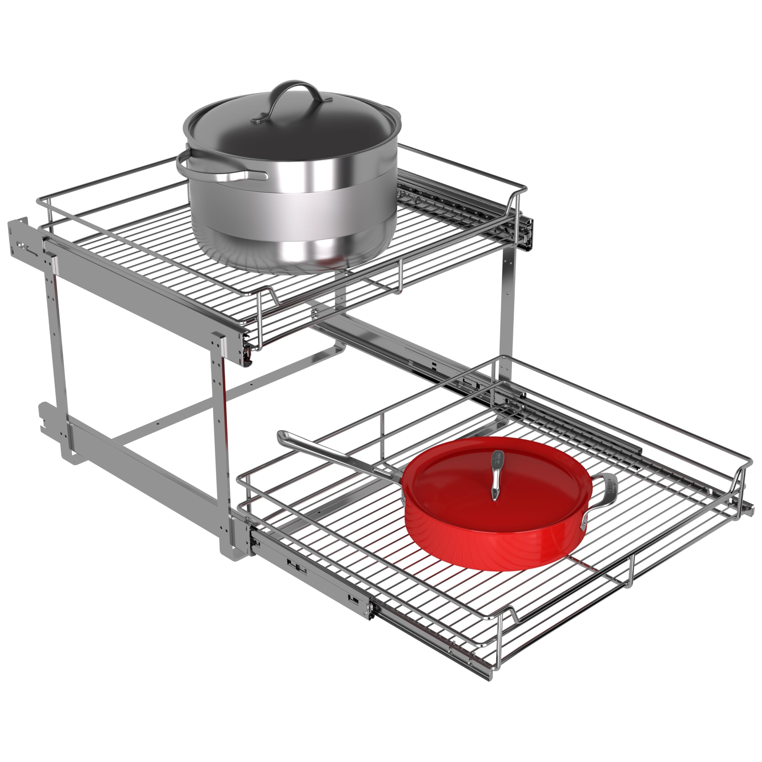 MAXIMIZE YOUR WIDE CABINETS: Finally, a solution for those large, deep cabinets. This extra-wide 2-tier pull out cabinet organizer turns chaotic shelves into functional, easy-to-access drawers. An essential cabinet organizer for large cookware collections and pantry staples