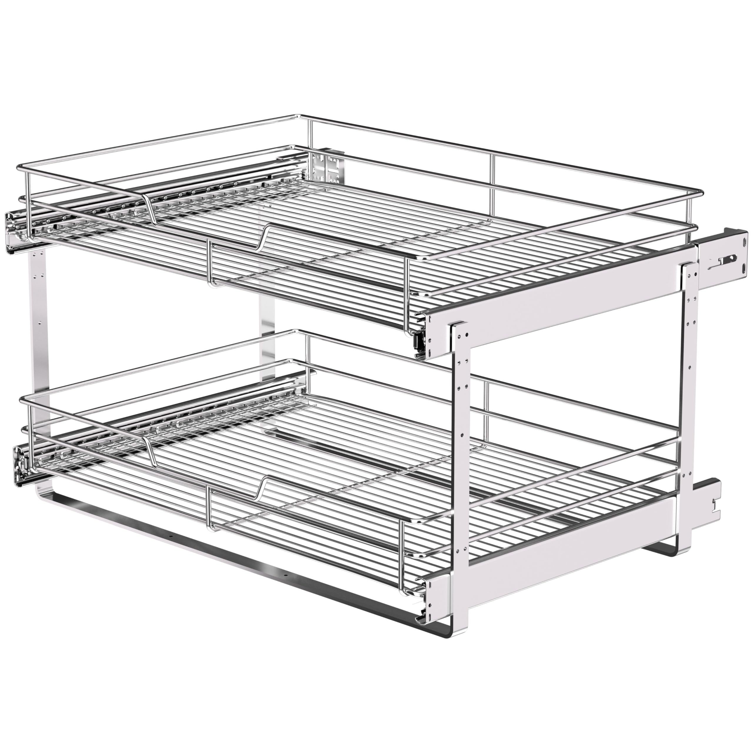 BUILT TO HOLD YOUR HEAVIEST ITEMS: Don't settle for flimsy solutions. Our kitchen pull out shelves are constructed from industrial-grade steel to handle a 100 lb load with zero sagging. The full-extension glides operate flawlessly, providing a satisfyingly smooth pull out