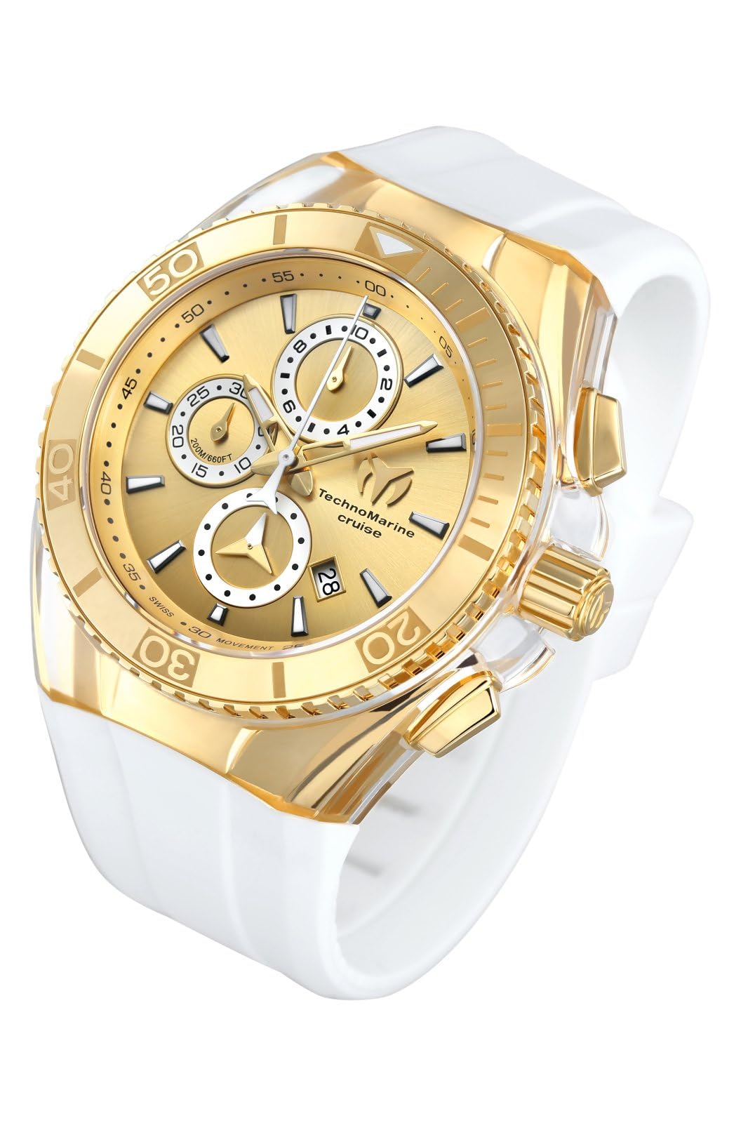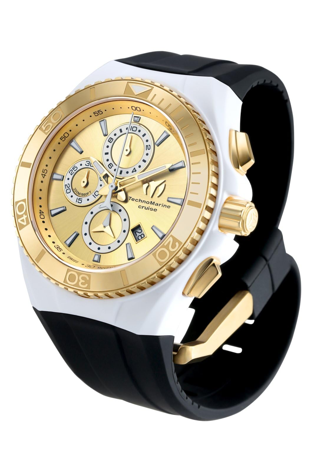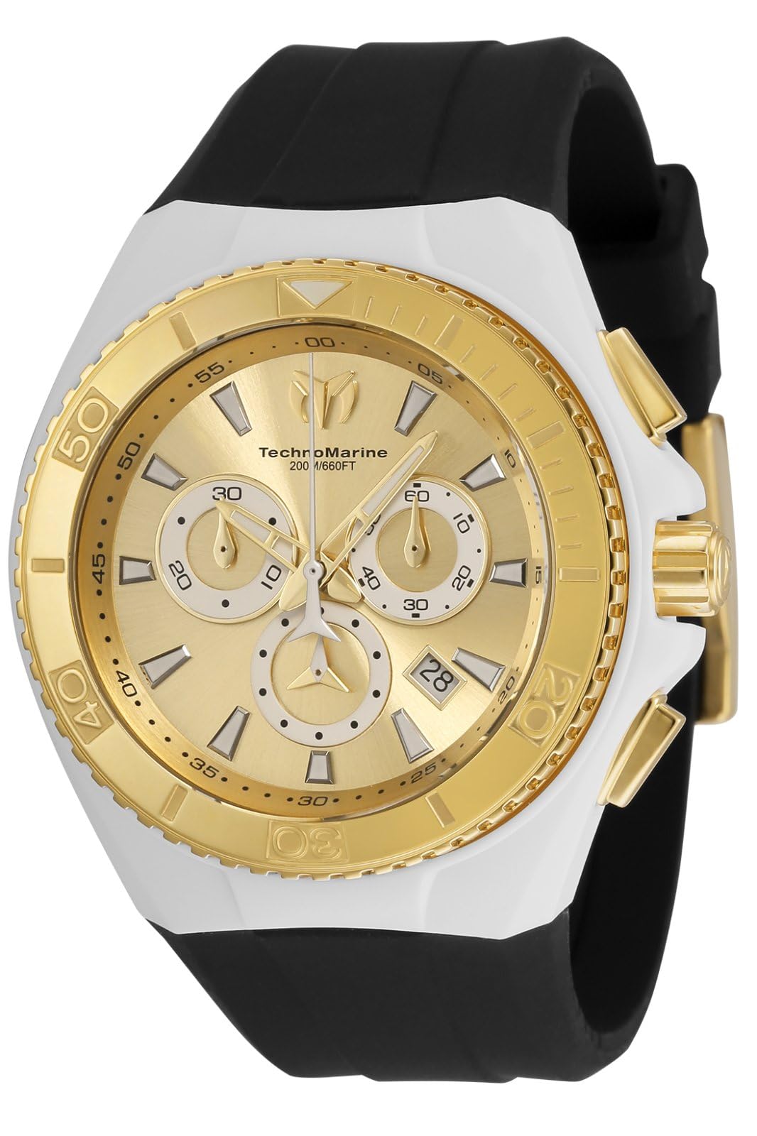 Description Brand: Technomarine Model: TM115049 Movement: Swiss Caliber:3540.D Case Diameter : 46.65mm Case material: Stainless Steel Crown: Screw Down Dial Material: Metal Band Material: Silicone Band Colors: Black & White Length: 210mm 210mm Size: 29.1mm 29.1mm Buckle: Clasp Features: Included 2 bands 2 covers MSRP: $620.00