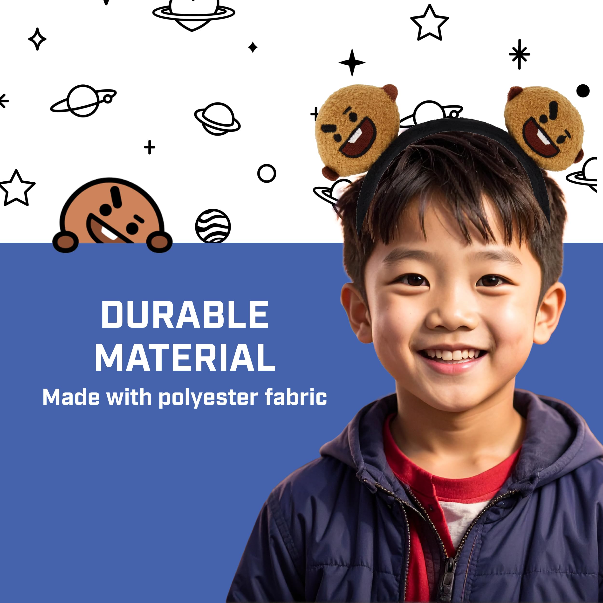 Add a fun, adorable costume headband to your womens fashion accessories and give the perfect gift to the Kpop fan in your life with our BT21 LINE FRIENDS SHOOKY Hairband! Crafted with soft and durable polyester material, this fashionable headband features adorable animal ears resembling everyone's favorite LINE FRIENDS character SHOOKY, and provides a snug yet gentle fit on a wide range of adult women's heads without squeezing, slipping, or giving you a headache. Whether dressing up for a casual outing, summer party, cosplay event, or simply wanting to add a touch of fun Korean pop style to your fashion accessories, this BT21 hairband adds an adorable twist to any outfit! Our hairbands are officially licensed BT21 merch, ensuring you are receiving quality fashion accessory items for lovers of Korea pop music.