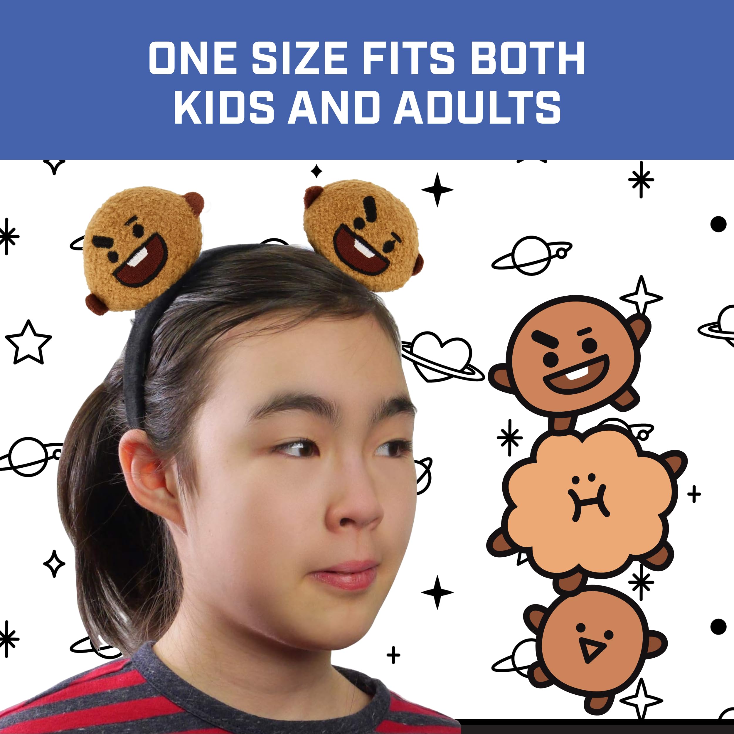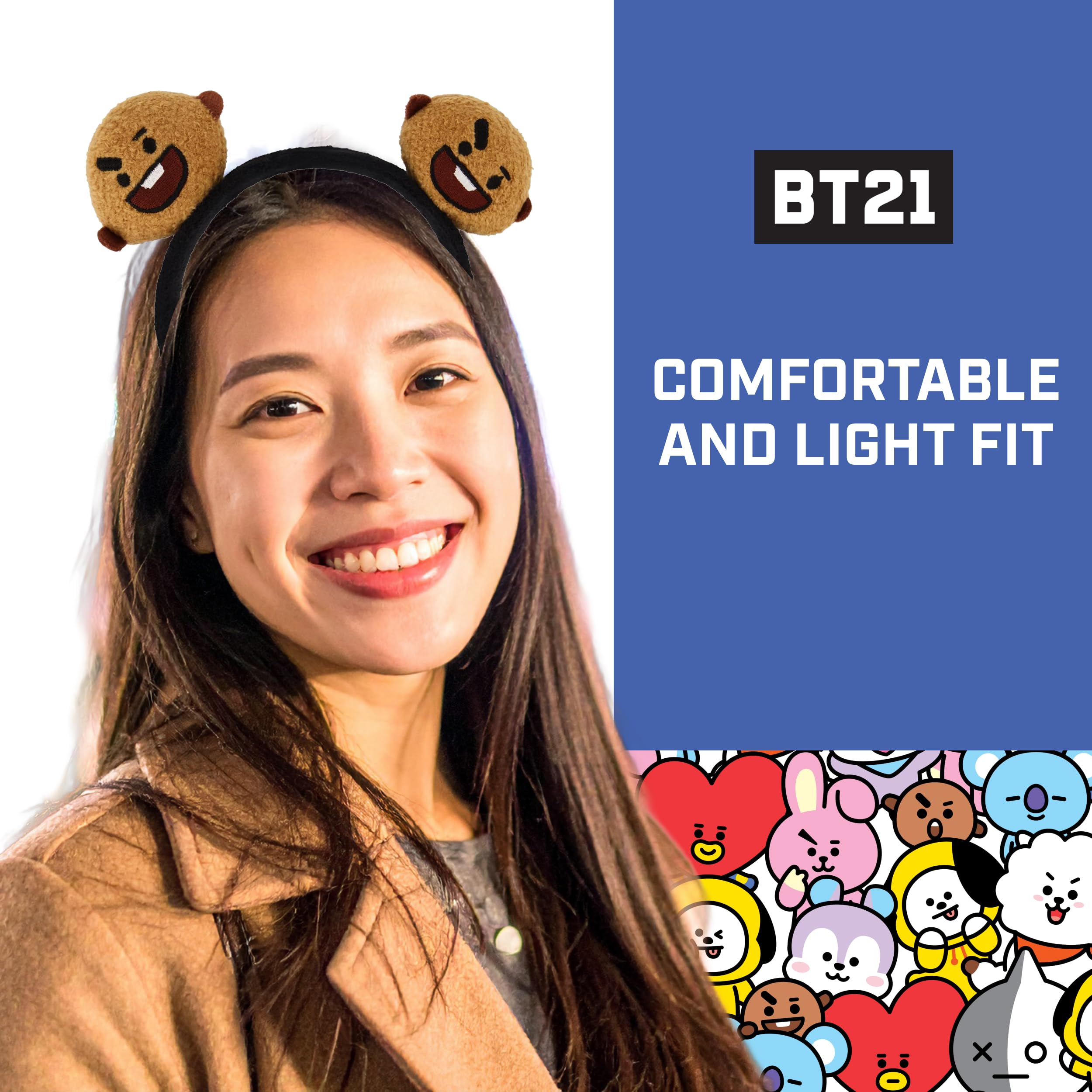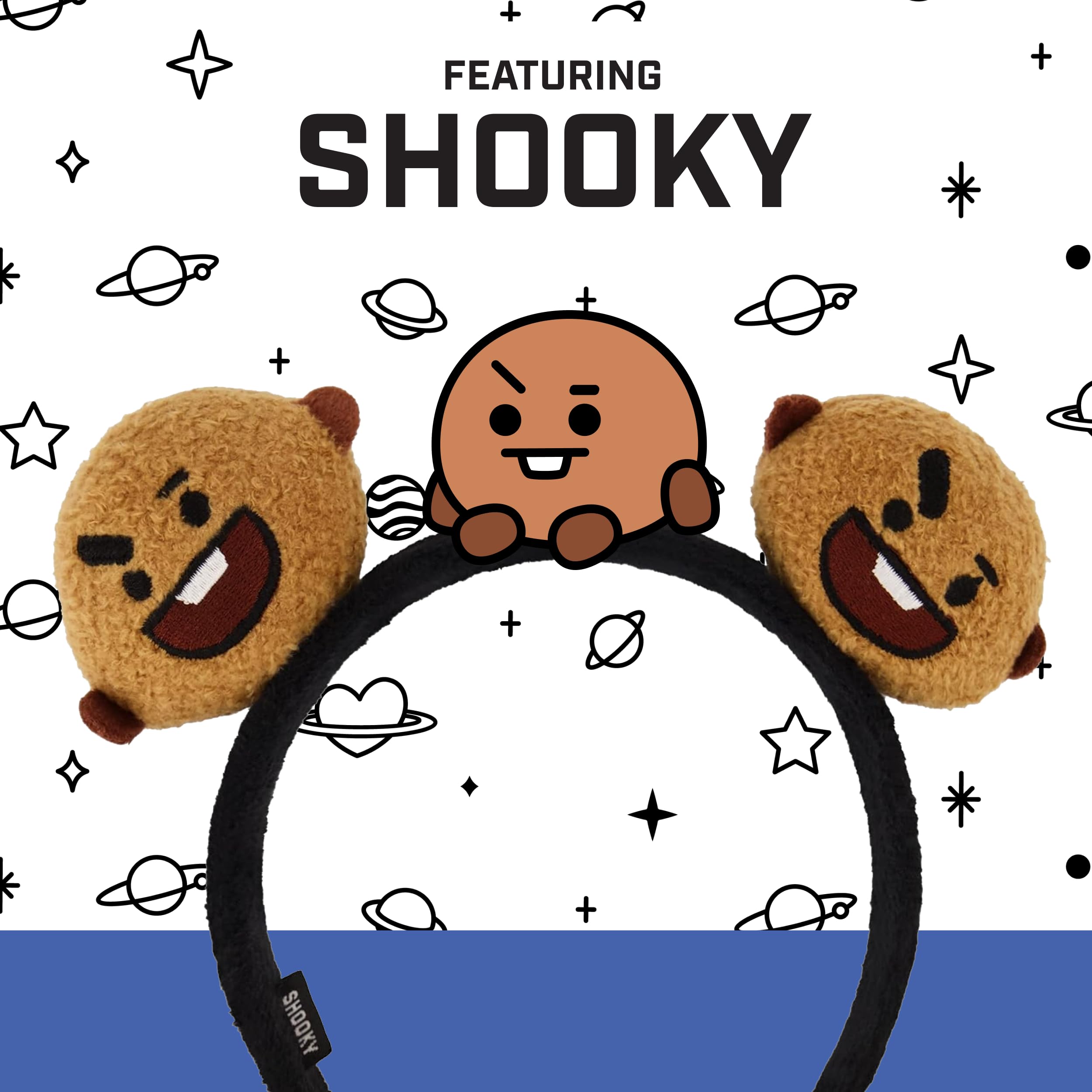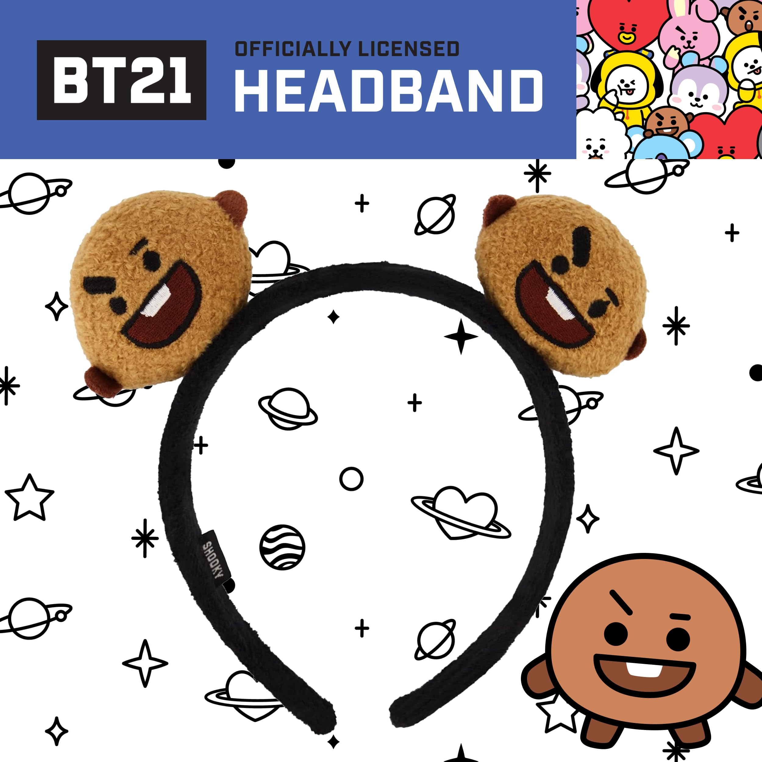 BT21 SHOOKY HEADBAND: Add a touch of fun K-pop style to your fashion wardrobe with our cute and colorful BT21 ladies headband! This stylish and charming hair band features decorative 3D animal ears resembling everyone's favorite LINE FRIENDS character SHOOKY, and is a unique and adorable way to turn any ordinary outfit into a fashion statement