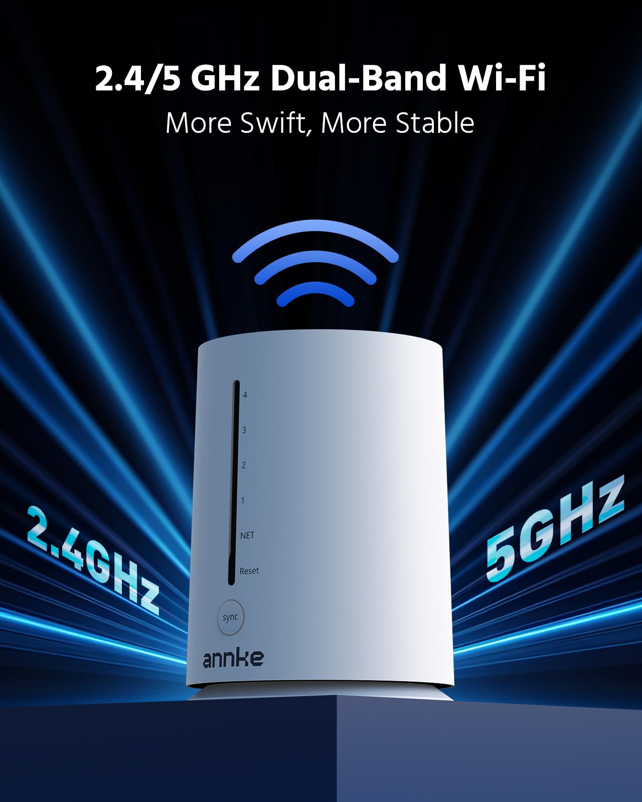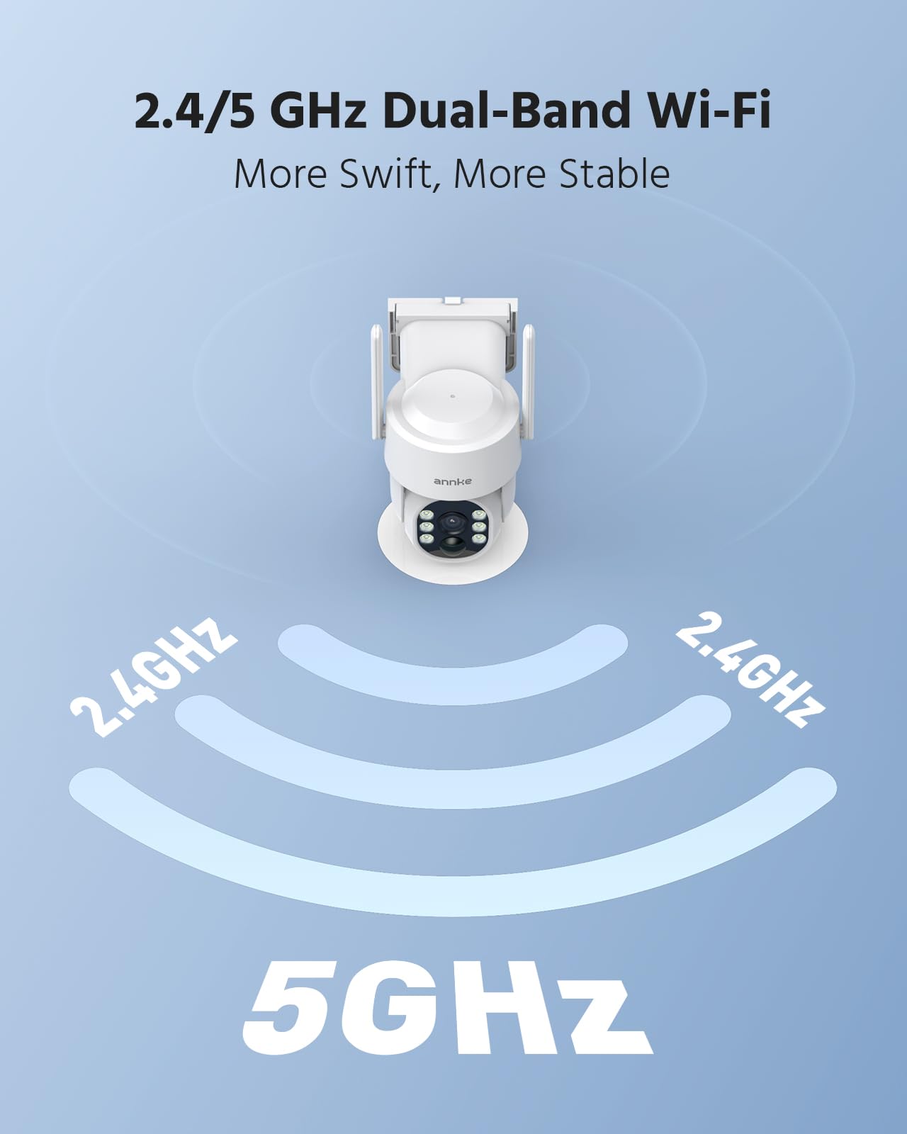 【100% Wire-Free & Dual-Band WiFi】No wires, no limits - Solar-powered with built-in battery for continuous operation. 360° adjustable bracket maximizes sun exposure. Dual-band WiFi (2.4/5 GHz) ensures faster speeds and stable connectivity, even at long range.