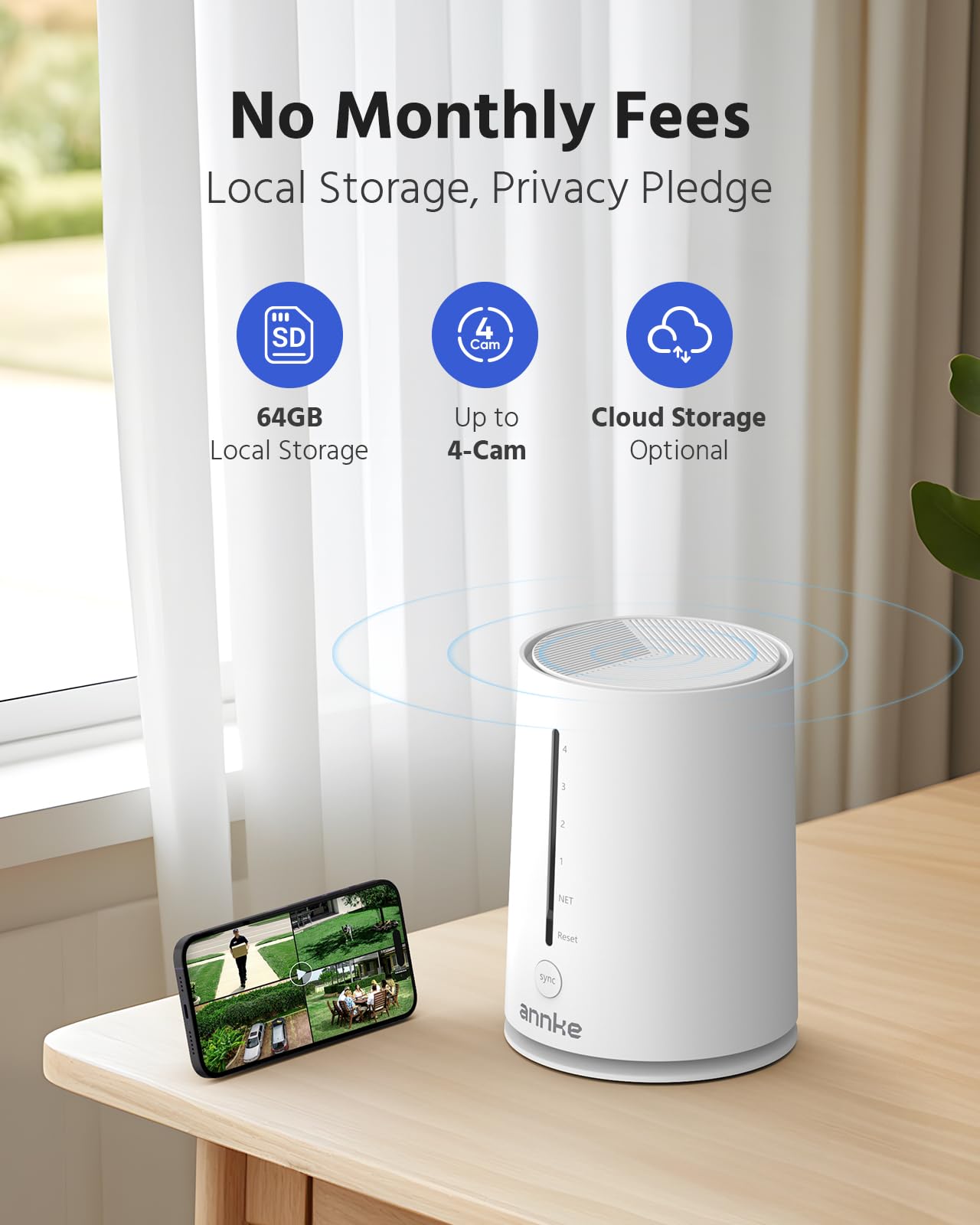 【No Monthly Fees - Secure Local Storage】Zero subscriptions needed! Includes 64GB microSD card (expandable to 512GB) for continuous recording. All footage stays 100% private on local storage - no cloud data leaks or hacking risks like subscription-based systems.
