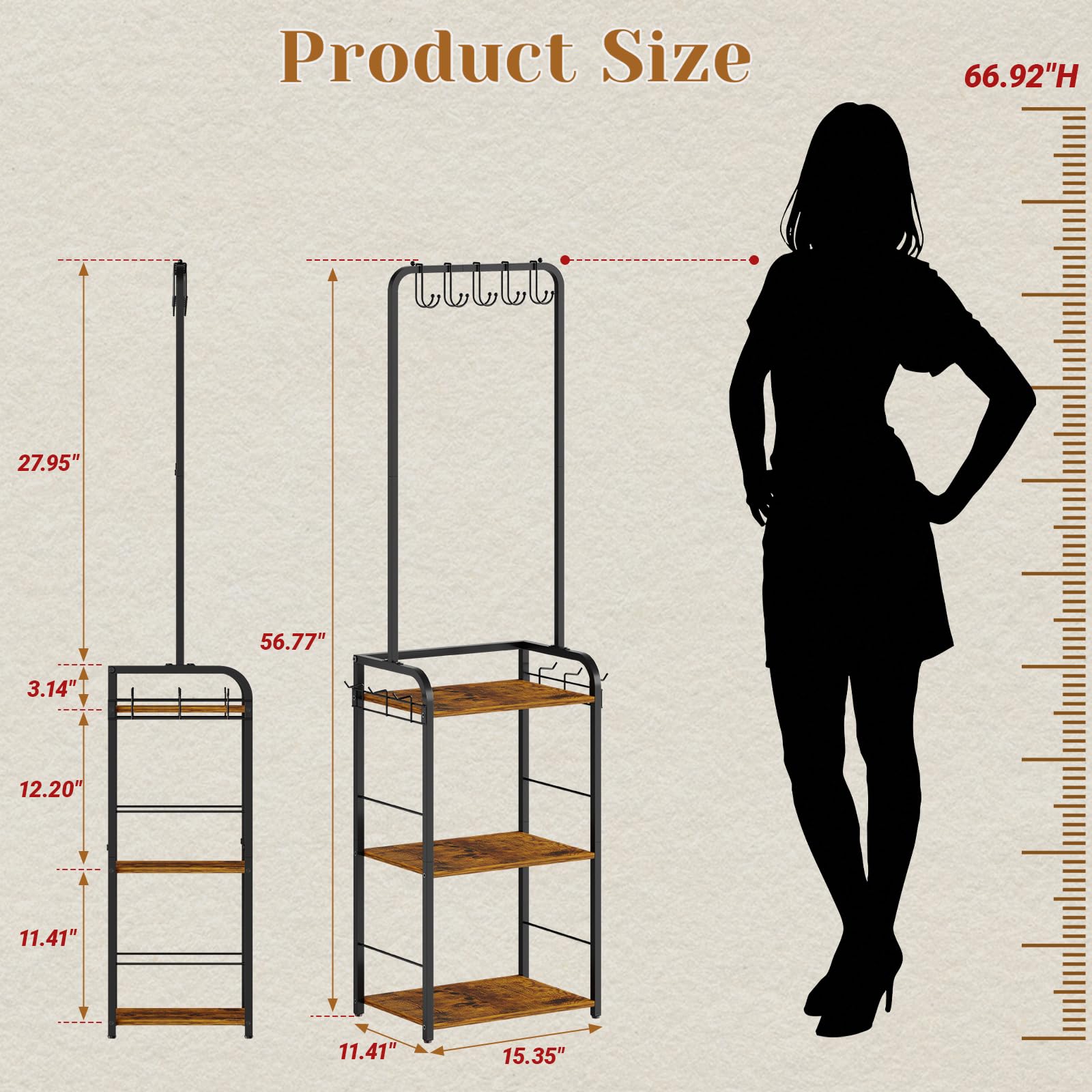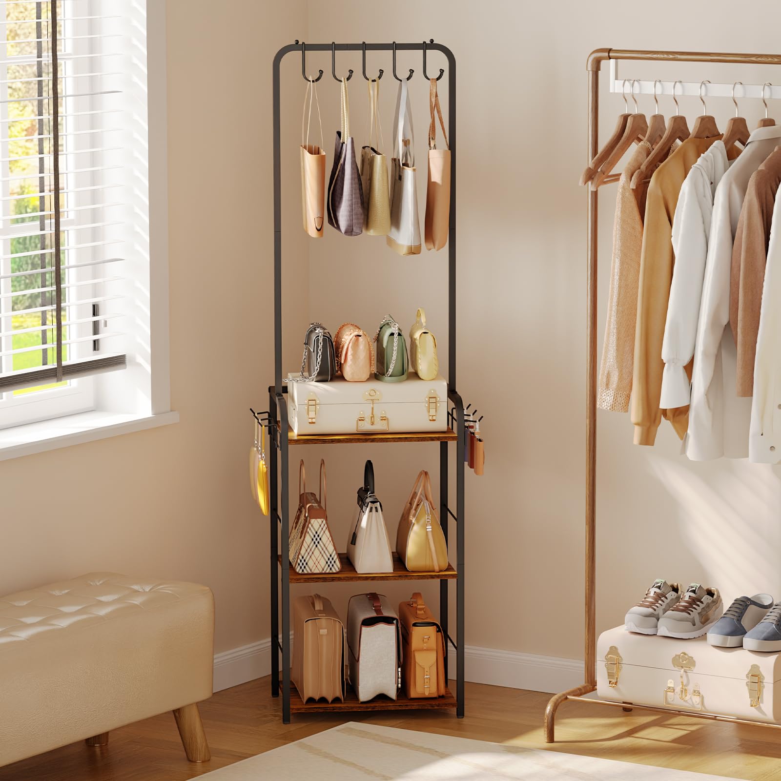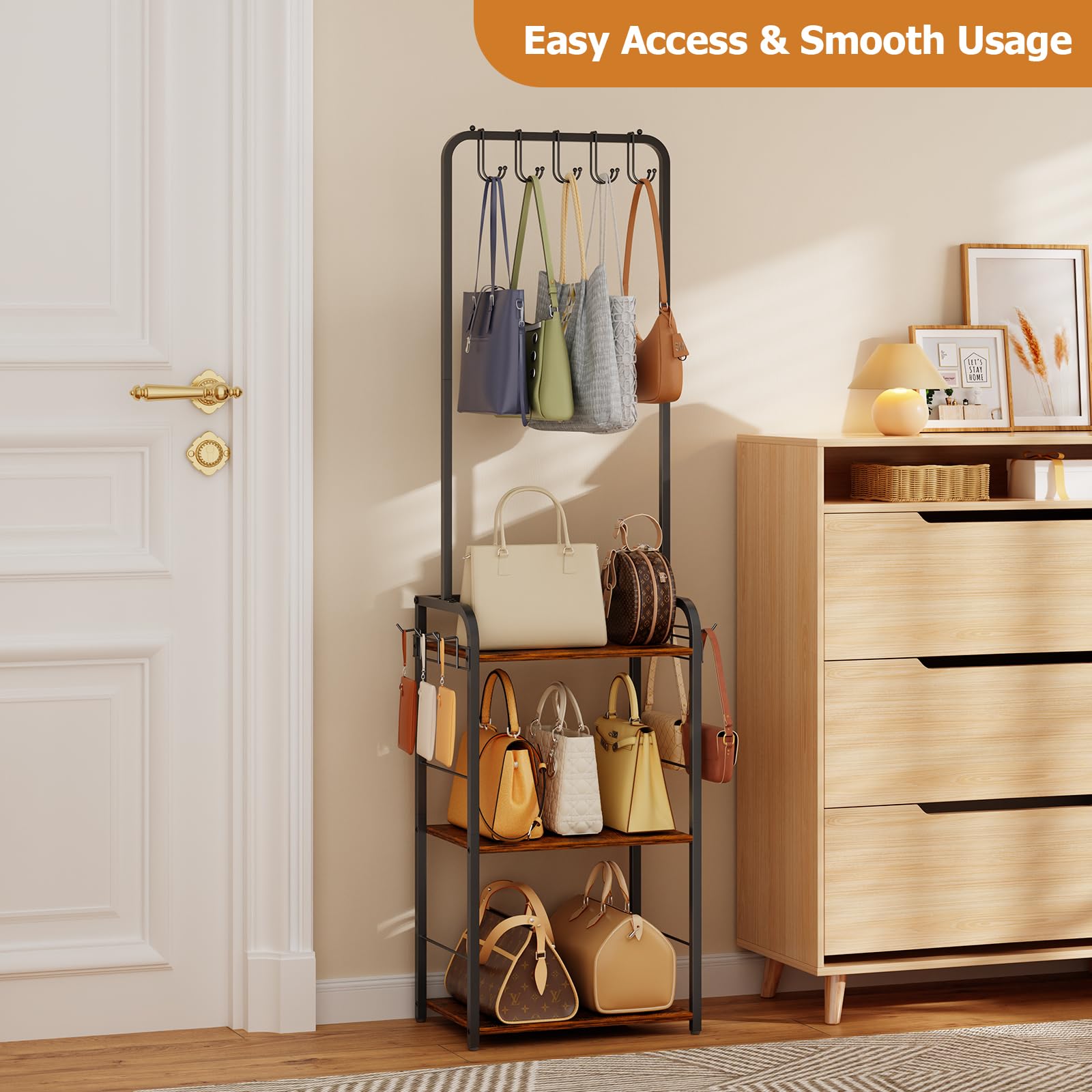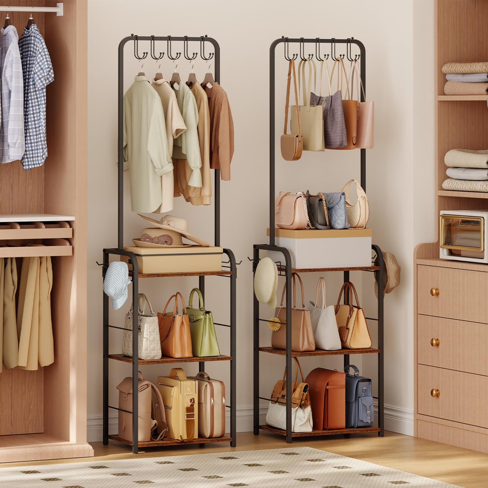 【Space-Saving Purse Rack for Narrow & Small Spaces】Slim 15.35" width easily fits bedroom corners, closet sides, entryways & beside dressers – tall purse organizer maximizes storage without taking floor space.