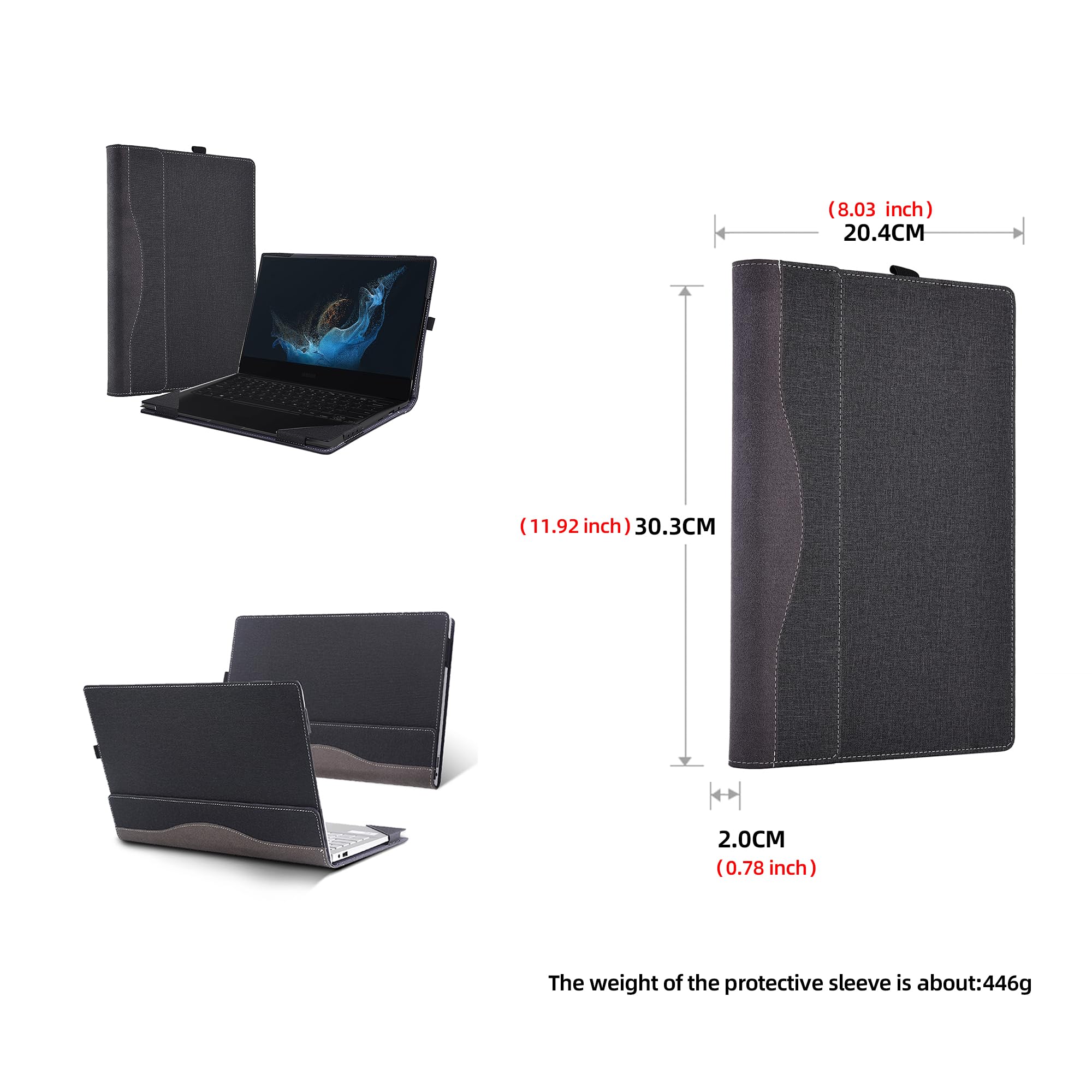 The protective cover is only suitablefor Samsung Galaxy Book 2 360 |Book Pro 360|Book 2 pro 360 | Book 3 360|Chromebook 13 XE930QCA/Book Flex 13.3 NP930QCG[ Not suitable for other sizes]PU Leather Detachable Cover, protects all corners.